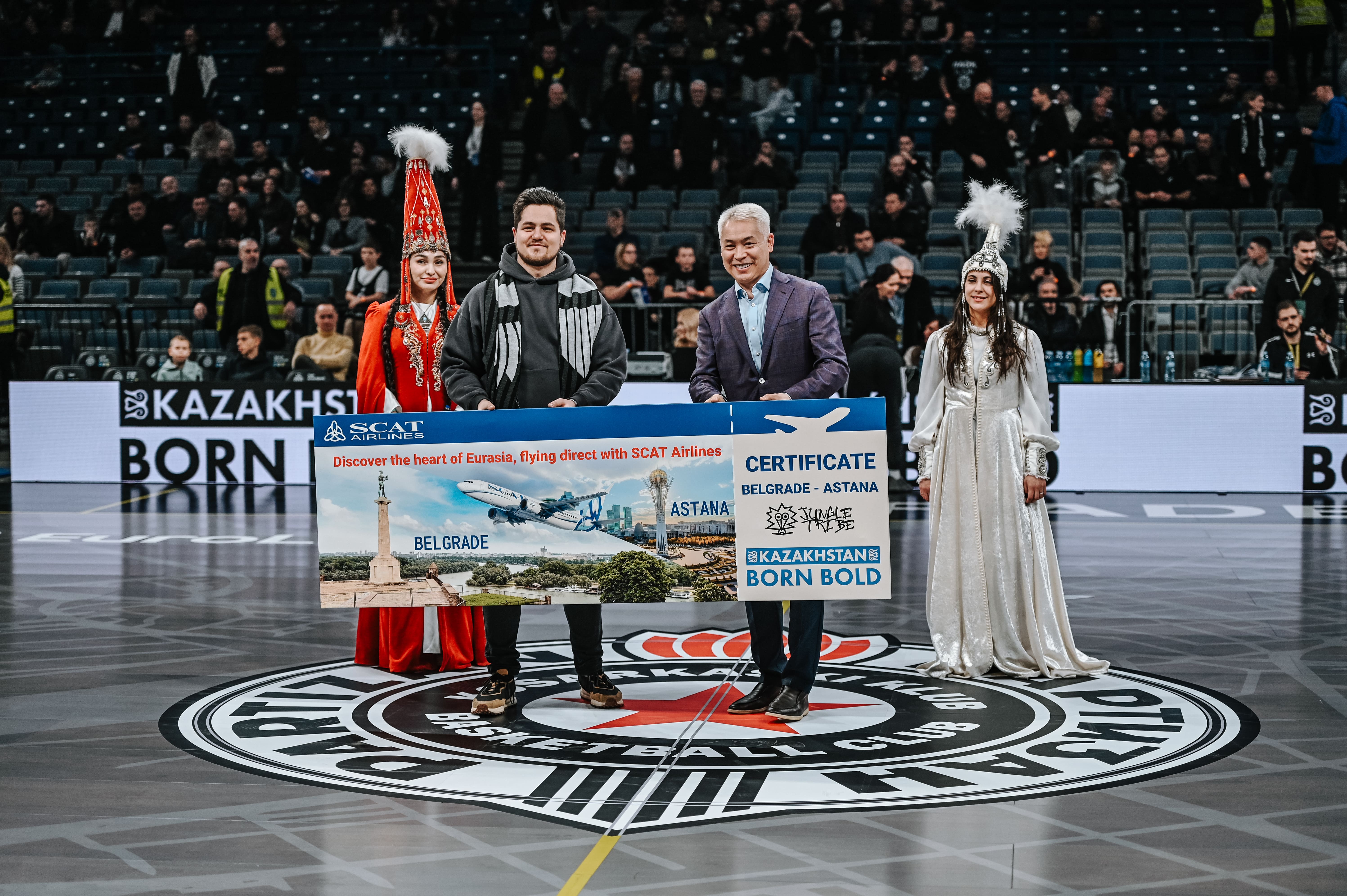 Belgrade, February 5, 2026 – As part of one of Europe’s largest sporting events, the EuroLeague basketball match between Belgrade’s Partizan and Athens’ Panathinaikos, a presentation of Kazakhstan’s tourism potential was held, along with the promotion of the recently launched direct air route Astana–Belgrade.At the initiative of the Embassy of Kazakhstan, an interactive promotion was organized among the 18,000 spectators at the Belgrade Arena. Randomly selected fans were given the opportunity to take part in a free-throw shooting contest offered by the Partizan basketball club.The prize for the winner – a certificate for a tourist trip to Kazakhstan for two – was presented by the Ambassador of Kazakhstan to Serbia, Madi Atamkulov. Congratulating the winner, the Kazakh diplomat greeted the multi-thousand audience and invited to visit Kazakhstan.The atmosphere of the contest was enhanced by tourism videos titled “Born Bold Kazakhstan” broadcast on the arena’s screens, a promotional video of the direct Astana–Belgrade flight launched by Kazakhstan’s airline SCAT Airlines, as well as girls in traditional Kazakh national costumes who distributed “Born Bold Kazakhstan” T-shirts and baseball caps among basketball fans.The EuroLeague ranks second in Europe in terms of popularity and media reach among sporting competitions. The EuroLeague regular season is broadcast in 199 countries worldwide, with a total television audience exceeding 1 billion viewers.All expenses related to the purchase of airline tickets for the contest winners will be fully covered by Serbian tourism organizers and businessman Dragiša Martinović.Source : https://www.gov.kz/memleket/entities/mfa-belgrad/press/news/details/1156543?lang=kk
