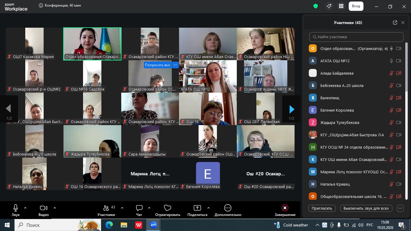 19 марта 2026 года в режиме ZOOM-конференции проведен очередной районный семинар по вопросам реализации инклюзивного образования в организациях образования района. В семинаре приняли участие педагоги общеобразовательных школ.На семинаре была рассмотрена актуальная на сегодняшний день тема - «Роль педагога-ассистента в сопровождении ребенка с особыми образовательными потребностями».В заключении, были даны полные и развернутые ответы и рекомендации, озвученные в ходе обсуждения.Source : https://www.gov.kz/memleket/entities/edu-osakarovka/press/news/details/1185694?lang=kk