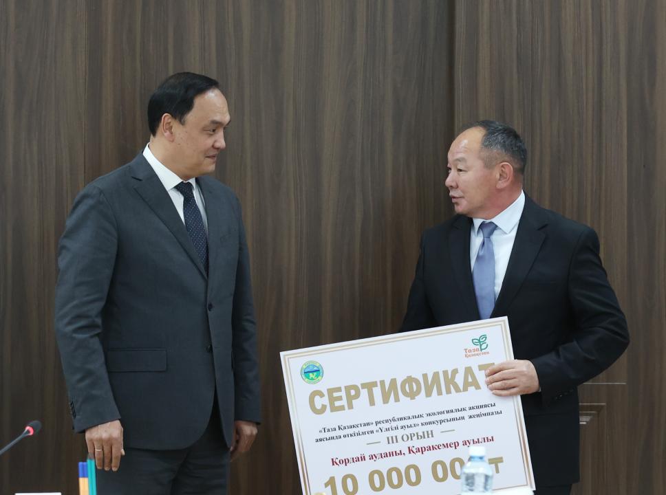 Akim of Zhambyl region Yerbol Karashukeyev awarded the winners of the "Model Village" competition, organized as part of the republican environmental campaign "Taza Kazakhstan".To date, the campaign has cleared the territory of 60 historical and cultural monuments, 143 parks and squares, 829 km of canals and irrigation ditches, 137.5 thousand yards and 4.8 thousand km of urban and rural streets. More than 30 thousand tons of garbage were removed. About 60 thousand seedlings have been planted. 1,104 units of equipment were involved in the clean-up.- In accordance with the instructions of the Head of State, the republican environmental campaign "Taza Kazakhstan" continues in the region. Zhambyl residents actively participate in clean-up activities. We must fully support the environmental movement, we don't need to participate for the sake of showing off just to take a photo. There are many who approach this campaign with responsibility. These are our residents who should be an example for others. The campaign shows how important it is to take care of the cleanliness of our common home. Therefore, it is important for us to unite in this matter," said Erbol Karashukeev. According to the results of the "Model Village" competition, 8 settlements were recognized as the best. Cash certificates were awarded to rural akims (I place - 50 million tenge, II place - 25 million tenge, III place - 10 million tenge).The third place was shared by the villages of Karakemer (Kordai), Koktal (Talas), Igilik (Sarysu), Aspara (Merke), and Grodekovo (Zhambyl).The second place was taken by the villages of Kairat (Zhualy) and Akyrtobe (Ryskulova village). The village of Kenes in the Bayzak district has become an exemplary one.It is worth noting that the funds will be used for the construction of social facilities, as well as for the ongoing renovation of buildings in villages.Source : https://www.gov.kz/memleket/entities/zhambyl/press/news/details/906984