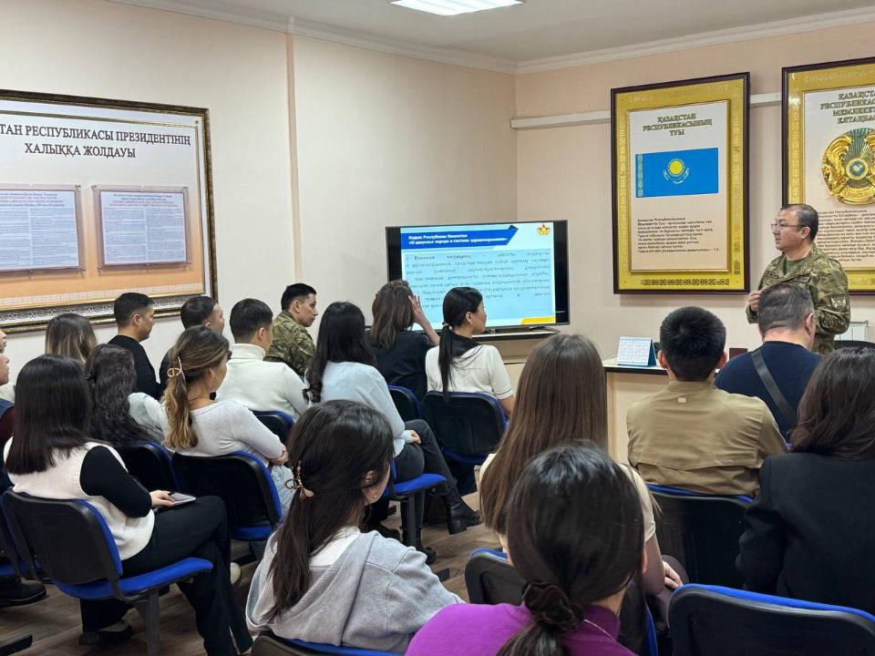 43 students of the "Astana Medical University" intend to enter military service under a contract.The head of the Main Military Medical Department of the Armed Forces of the Republic of Kazakhstan, Colonel of the Medical Service Yerzhan Smail, met with young people who plan to link their fate with the army.It was attended by the heads of medical services of the Armed Forces and branches of the armed forces, as well as officers of personnel bodies. Military doctors informed students about the features of serving in military medical positions, changes and additions made to regulatory legal acts to improve the social package of military doctors.Specialists of the Main Military Medical Department have made it a habit to meet annually with graduates of schools and medical colleges, conscripts and contract servicemen, as well as students of medical universities who have completed a full course of military departments. The goal is to attract citizens to military service under a contract and to implement the admission to the internship at the Air Defense Forces Military Institute.Today, it should be noted that 24 people from among the students of "Astana Medical University", S. Asfendiyarov Kazakh National Medical University, "Kazakhstan-Russian Medical University" and "Semitic Medical University" have expressed their intention to enter the military institute internship this year. And 43 students of "Astana Medical University" have chosen military service under a contract.Source : https://www.gov.kz/memleket/entities/mod/press/news/details/928823