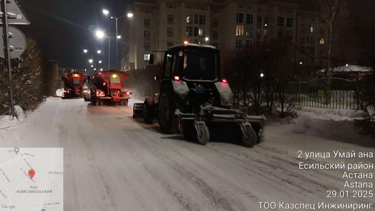 It is snowing in the capital. The snowstorm will continue tomorrow. Public utilities are carrying out snow removal work without interruption, the official website of the Astana akimat reports.It is snowing non-stop on the streets of the capital. Such weather conditions will continue in the city for the next two days.According to weather forecasters, a snowstorm will occur on January 30-31, the wind will intensify, and the air temperature will drop to 15-17 degrees below zero.Public utilities are carrying out snow removal work around the clock in all districts of the capital.On the night of January 30, 316 road workers and 1,557 special equipment were deployed to clear snow.On January 29, 4,127 heavy trucks removed 51,284 cubic meters of snow from the city during the day shift.A total of 4,339,580 cubic meters of snow have been removed to snow dumps in 341,798 flights since the beginning of the winter season.First of all, according to the rules, places with the highest traffic volumes will be cleared to avoid traffic jams on the roads. Also, medium-intensity areas - squares, areas near train stations, sidewalks, entrances to social facilities, etc. will be cleaned.Cleaning of central streets, places where passenger transport routes pass, stops and sidewalks is also a priority.There are several equipped snow polygons in the city. They are equipped with a system for reading license plates of dump trucks, video surveillance cameras are installed here, and lighting is turned on.We ask residents and guests of the capital to be careful on the roads, follow safety rules, and not go on long trips if there is a storm warning.In case of an emergency, call "112".Source : https://www.gov.kz/memleket/entities/astana/press/news/details/927279