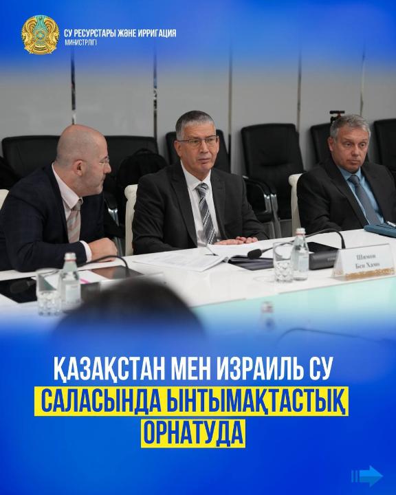 Minister of Water Resources and Irrigation Nurzhan Nurzhigitov met with Shimon Ben Hamo, Chairman of the Board of Directors of the Israeli investment company Dan Capital.The parties discussed the implementation of joint projects for the construction and reconstruction of hydraulic structures in Kazakhstan. Today, Israeli engineers have inspected 4 reservoirs and made proposals for their reconstruction.The parties discussed the issues of modernizing the Yntymak reservoir in Zhambyl region and increasing its volume. The minister also proposed modernizing the irrigation canals of the Sarysu district, introducing modern water-saving technologies.Israeli investors expressed their readiness to implement a joint project with Kazakhstani companies. The foreign delegation also proposed organizing advanced training courses for Kazsuchar specialists in Israel.“Further discussions will continue within the framework of a joint working group. Experts from both sides will consider the technical component of the project. "The working group will also determine the direction and topics of advanced training courses for our specialists," said Nurzhan Nurzhigitov, Minister of Water Resources and Irrigation.Source : https://www.gov.kz/memleket/entities/water/press/news/details/924831