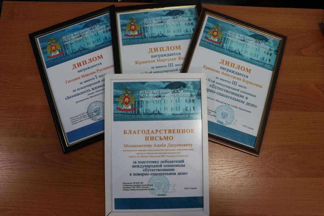 The 2nd year cadets of the M. Gabdullin Academy of Civil Protection took part in the international online Olympiad. The event was held on the basis of the Federal State Budgetary Educational Institution of Higher Education "Siberian Fire and Rescue Academy" of the State Fire Service of the Ministry of Emergency Situations of Russia. The Olympiad was attended by university students from Kazakhstan, Azerbaijan, the Republic of Belarus and Russia. Cadet Maxim Gitlein took 1st place in the subject "Life safety", cadets Anastasia Kryukova and Margulan Zhumagali took 3rd place in the discipline "Natural Science in fire and rescue". The supervisor, lecturer of the Department of General Technical Disciplines of Information Systems and Technologies of the Alibi Moldakhmetov Academy was awarded a letter of thanks from the organizers for preparing cadets for the Olympiad. "It is a great honor for us to see our cadets achieve high results in the international arena. Their success is the result of hard work and a desire for knowledge. These achievements confirm the high level of our academy and the seriousness of our approach to training future specialists in the field of civil protection," said Alibi Moldakhmetov.Source : https://www.gov.kz/memleket/entities/emer/press/news/details/921980
