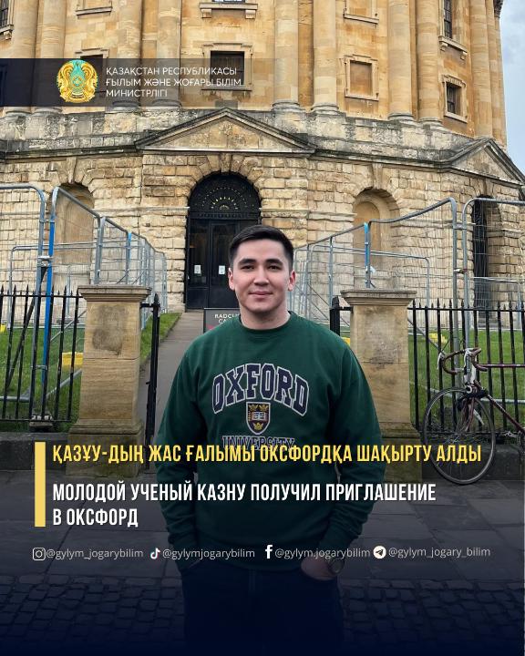 A young KazNU scientist has received an invitation to OxfordArystanbek Akylbai, a young scientist at the Department of Chinese Studies at the Faculty of Oriental Studies of Al-Farabi Kazakh National University, has been enrolled at Oxford University as a recognized student.Starting in January 2025, he will study Regional Studies at the Oxford School of Global and Regional Studies in the UK. Upon graduation, Arystanbek will receive the status of an associate graduate of Oxford University.Earlier, a young KazNU scientist was invited to Harvard (USA) and successfully worked out a contract as a visiting researcher.Source : https://www.gov.kz/memleket/entities/sci/press/news/details/922671