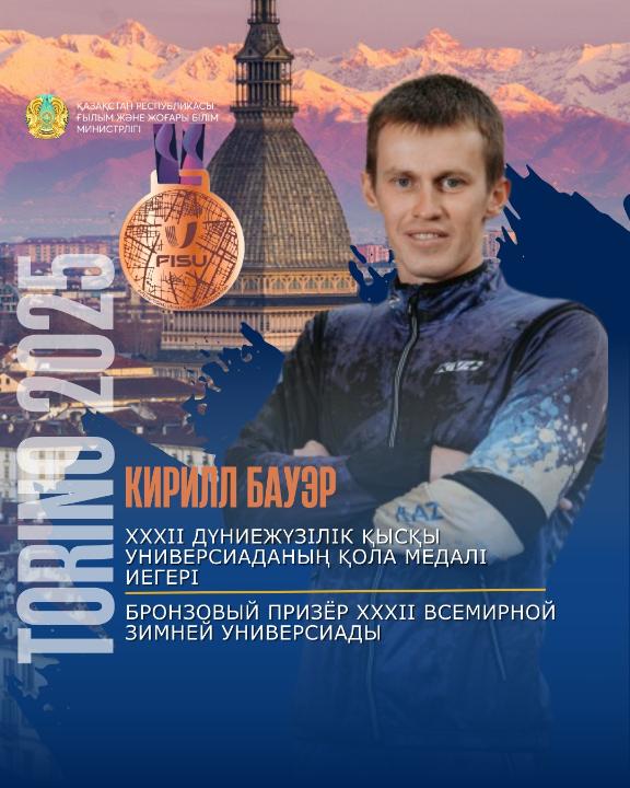 Kirill Bauer is the bronze medalist of the Universiade In the Winter Games among students in Turin, our compatriot Kirill, a student of the Kazakh Academy of Sports and Tourism, finished third in biathlon (20 km).Congratulations!Source : https://www.gov.kz/memleket/entities/sci/press/news/details/922653