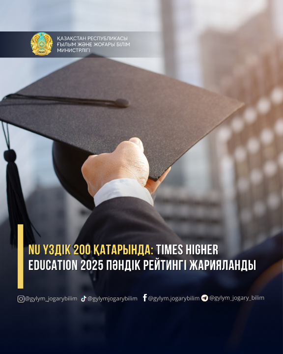 NU IN THE TOP 200: THE TIMES HIGHER EDUCATION 2025 SUBJECT RANKING HAS BEEN PUBLISHED The 2025 subject ranking of world universities has been published, which includes thousands of universities in 11 subject areas.Four leading Kazakhstani universities, Nazarbayev University (NU), Al-Farabi Kazakh National University, L.Gumilyov ENU and Satpayev University, took positions in 9 areas. In the field of Education StudiesNazarbayev University – 176th - 200th place,Al-Farabi Kazakh National University – 501 - 600th place,L. Gumilyov ENU – 601+ places. In the field of Art and HumanitiesNazarbayev University – 401-500 place,Al-Farabi Kazakh National University – 501-600 places,L. Gumilyov ENU – 601+ places. In the field of EngineeringNazarbayev University – 401 - 500th place,Al-Farabi Kazakh National University – 1000 - 1250th place,L. Gumilyov ENU – 1000 - 1250th place,Satpayev University – 1250+ places. In the direction of Medical and HealthNazarbayev University – 401 - 500th place,KazNU named after al-Farabi – 601 - 800th place. In the field of Social SciencesNazarbayev University – 401 - 500th place,KazNU named after al-Farabi – 601-800 place,L. Gumilyov ENU – 801-1000 place. In the field of Computer ScienceNazarbayev University – 501-600 place,Al-Farabi Kazakh National University – 1000+ place,L. Gumilyov ENU – 1000+ place. In the field of Business and EconomicsNazarbayev University – 601-800 place,KazNU named after al-Farabi – 601-800 place,L. Gumilyov ENU – 801+ places. In the field of Life ScienceNazarbayev University – 601 - 800th place,KazNU named after al-Farabi – 801- 1000th place. In the field of Physical SciencesNazarbayev University – 601 - 800th place,Al-Farabi Kazakh National University – 1000 + place,L. Gumilyov ENU – 1000 + place,Satpayev University – 1000+ places. Nazarbayev University has become one of the best educational institutions in the world in the field of Education in the new Times Higher Education ranking. Out of a total of 11 evaluated areas, 9 NU programs were in the top 500. The ranking evaluates universities based on key criteria such as teaching, scientific activity, quality of research, collaboration with industry, and degree of internationalization. It is also worth noting that NU has become one of the leaders in Central Asia, entering the top 200 best universities in the world in the field of education. The Minister of Science and Higher Education of the Republic of Kazakhstan, Sayasat Nurbek, congratulated the staff and students of the NU School of Higher Education and Medicine on their excellent results in the ranking."Congratulations on being included in the top 200 global leaders in the field of education according to the Times Higher Education 2025 subject rating. This success is a vivid testimony to your professionalism, dedication and outstanding academic activity," he said. In 2024, Nazarbayev University entered the prestigious THE rating for the first time, taking positions in the range of 501-600. It is also worth noting the achievements of other Kazakhstani universities. According to the results of the Times Higher Education by Subject rating, al-Farabi Kazakh National University and L.Gumilyov ENU also took positions in 9 out of 11 programs.Al-Farabi Kazakh National University for the first time took the position of 501-600 place in the field of "Education". KazNU demonstrated steady growth in the fields of Arts and Humanities, also taking positions 501-600, and Social Sciences, where the university was in the range of 601-800. In addition, the educational institution has successfully maintained its position of 601-800 places in the disciplines of Business and Economics, Medicine and has risen by 801-1000 places in the field of Life Sciences. In the world university ranking by subjects for 2025, the L.N.Gumilyov Eurasian National University is in the 601+ category in the fields of Arts and Humanities and Sciences in Education. Two new subjects of ENU – "Arts and Humanities" and "Computer Science" were included in this rating for the first time this year. The breakthrough of 2025 is Satpayev University, which has taken positions in two programs "Engineering" (1250 + place) and "Physics" (1000+ place). The Ministry congratulates the university teams on their achievements and wishes them further success in competing with the best universities in the world!Source : https://www.gov.kz/memleket/entities/sci/press/news/details/922892