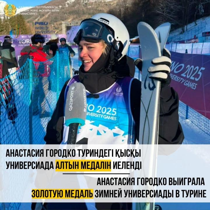 Kazakhstan has won its first gold medal at the XXXII World Winter Universiade in Turin today. Our compatriot Anastasia Gorodko, a 3rd-year student of the Kazakh Academy of Sports and Tourism, won the freestyle mogul competition with a score of 79.79 points and brought Kazakhstan the first gold medal. Japanese Harko Nakao took the second place (76.29 points), while German Hannah Wiese rounded out the top three (75.04 points). Another of our compatriots, Ayaulym Amrenova, a 1st-year doctoral student at al-Farabi Kazakh National University, also performed in the final, taking 5th place.Source : https://www.gov.kz/memleket/entities/sci/press/news/details/917799