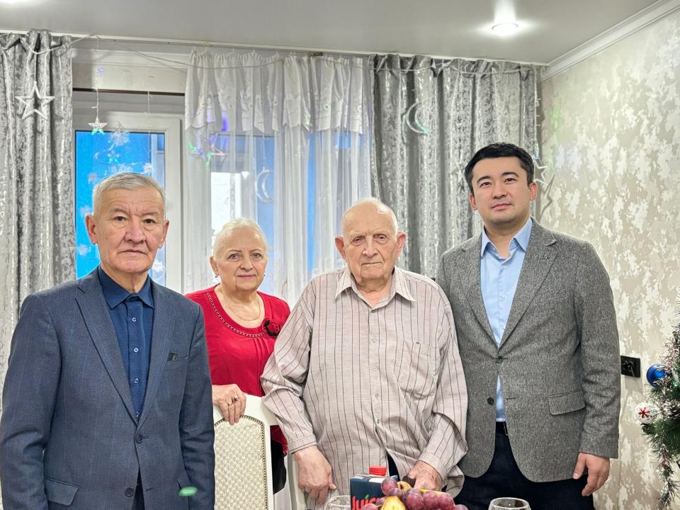 Chairman of the Regional Council of Veterans Serik Shangutov and Akim of Khromtau district Nurkhan Tleumuratov came to visit the war veteran to congratulate him on his birthday and New Year, expressing warm wishes.