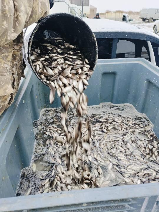 Live juveniles are released into the Zhaiyk River, located 55 km from this canal. 60 people are taking part in the rescue. Among them are representatives of the akimat, military personnel, volunteers, fishing industry entities, 12 pieces of equipment are involved.