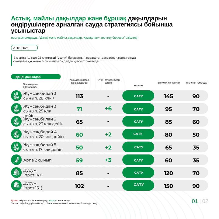 These recommendations are included in the “Grains and oilseeds. Kazakhstan» research bureau.
