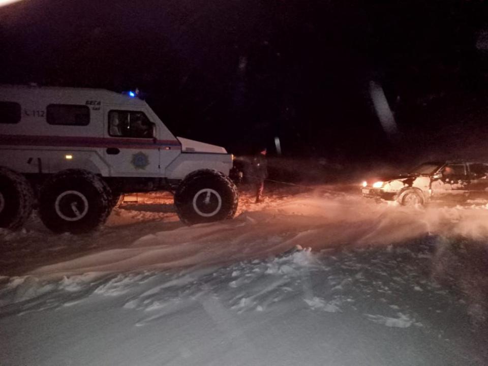 A passenger car got stuck in a snowdrift 5 km from the village of Topar in Abay district. Emergency rescuers pulled the passenger car out of the snowdrift and escorted it to a nearby settlement.