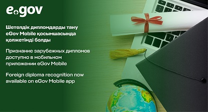 The eGov Mobile application now offers a service for the recognition of higher and postgraduate education diplomas obtained abroad. This allows graduates of foreign universities to have their diploma officially recognized for employment or further study in Kazakhstan.