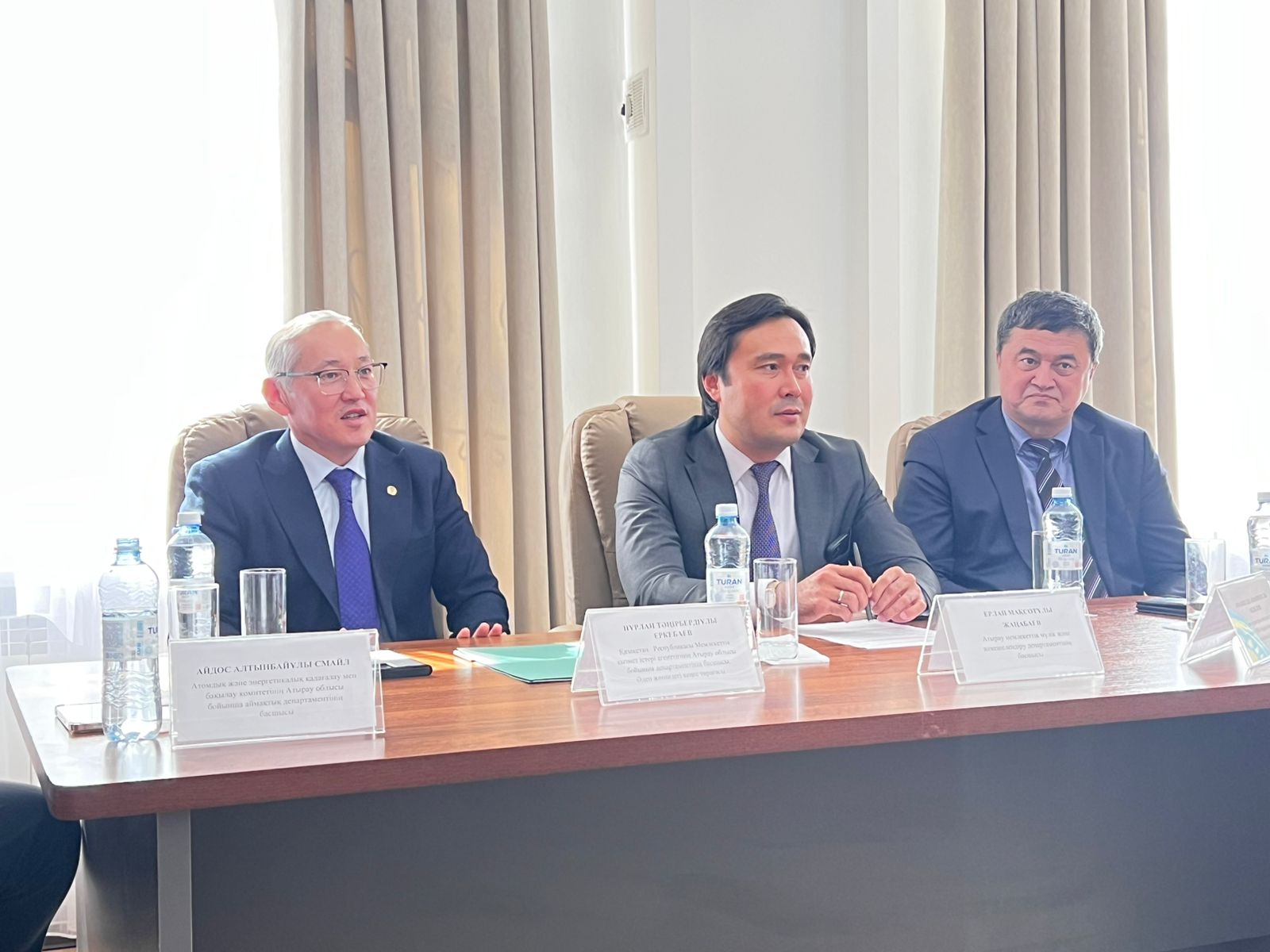 The meeting was attended by Department employees, Amangeldy Amaniyazovich Abdolov, Head of the Representative Office of the National Center for Human Rights in Atyrau Oblast; Yerlan Nurlanovich Yesenov, Head of the Department of the Committee for Technical Regulation and Metrology in Atyrau Oblast; Aidos Altybaevich Smail, Head of the Regional Department of the Committee for Atomic and Energy Supervision and Control in Atyrau Oblast; and employees of the Zhaiyk-Caspian Basin Inspectorate for the Use, Regulation, and Protection of Water Resources of the Water Management Committee of the Ministry of Water Resources and Irrigation of the Republic of Kazakhstan.