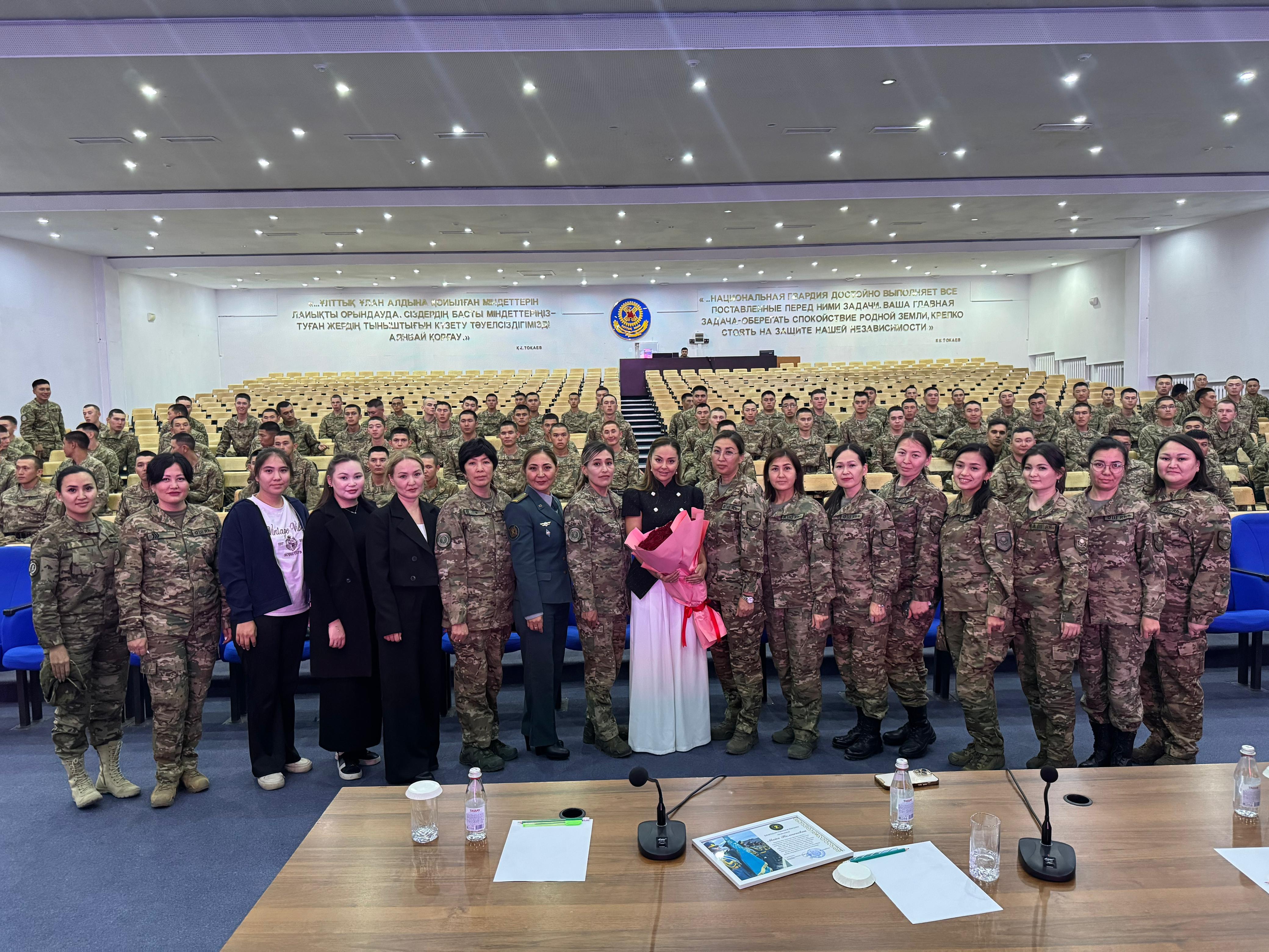Military unit 5573 of the National Guard of the Ministry of Internal Affairs of the Republic of Kazakhstan was visited by a distinguished guest — renowned journalist, TV presenter, producer, and public figure Maiya Tolegenovna Bekbayeva. This visit was not just a meeting, but a deep and meaningful dialogue about civic duty, the power of law, and personal responsibility.