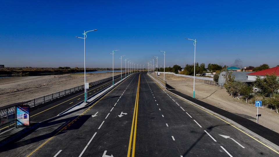Three bridges over the Syzdyk, Zhanadariya, and Shirkeyli canals along the road were reconstructed and widened to four lanes.