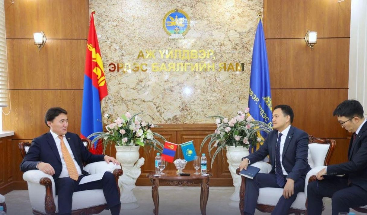 Concerning the meeting of the Ambassador of Kazakhstan to Mongolia Almas Seitakynov with the Minister of Industry and Mineral Resources of Mongolia Gongor Damdinnyam