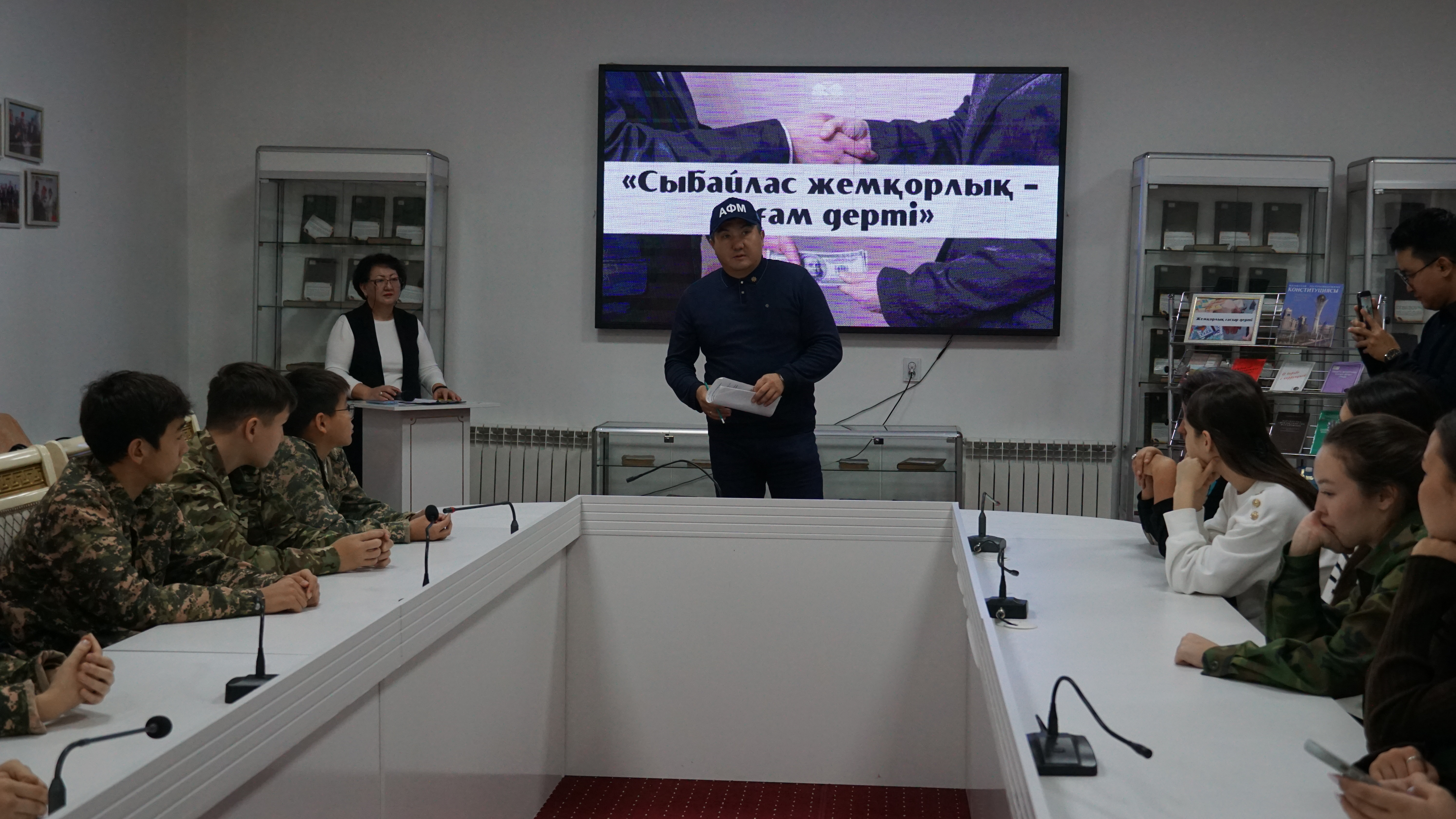 The event was attended by Lieutenant Colonel Alibek Izbasarov, an investigator for particularly important cases at the Organizational and Control Department of the Economic Investigations Department for the Zhetysu Region, who explained to the young people that the fight against corruption is becoming a pressing issue of national importance in the country, as it poses a significant obstacle to the country's development and economic growth. During the discussion, he provided detailed information on topics such as drops, gambling addiction, online casinos, and drug trafficking, and demonstrated relevant videos.