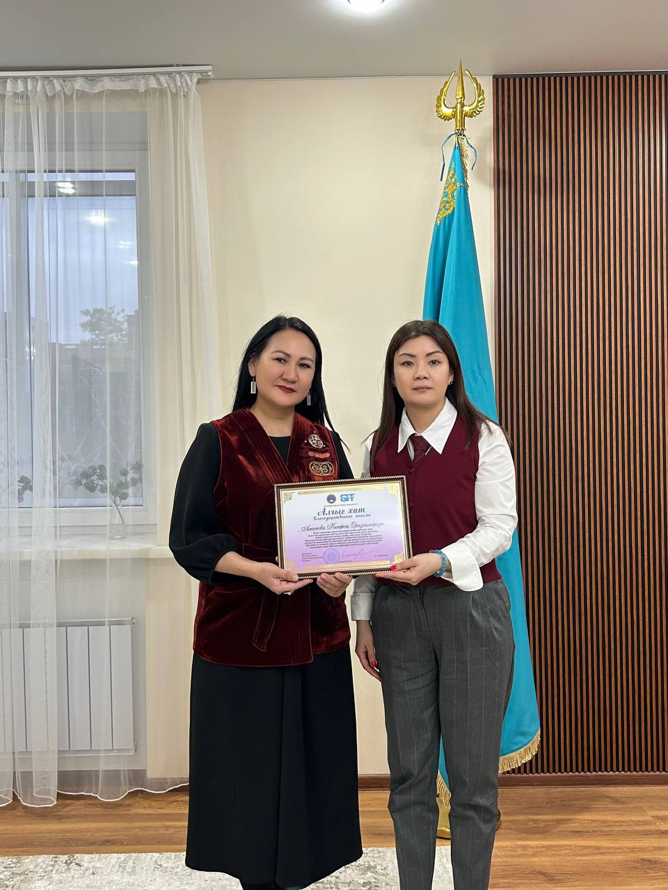 On November 10, 2025, Aliya Amanzhulova, Head of the Justice Department of Kostanay region, awarded Kenzhesh Amanova, Director and editor-in-chief of the newspaper "Kostanay Tany", with a letter of thanks as part of strengthening cooperation with the media, as well as implementing the ideology of "Law and Order".