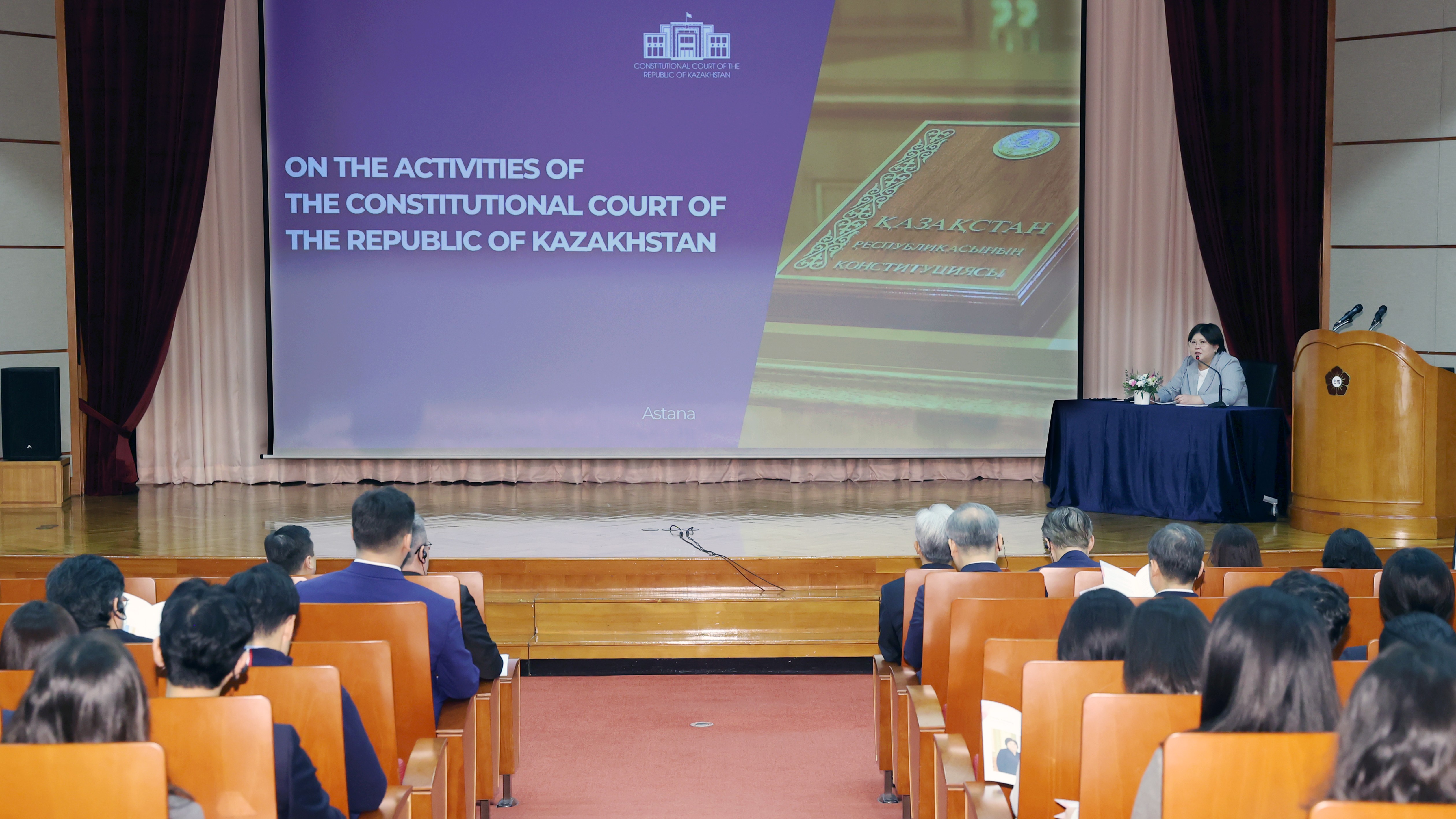 As part of her visit to the Republic of Korea, Chairperson of the Constitutional Court of the Republic of Kazakhstan Elvira Azimova delivered a lecture at the Constitutional Court for judges, constitutional law researchers of the Korean constitutional review body, and staff of its Secretariat.