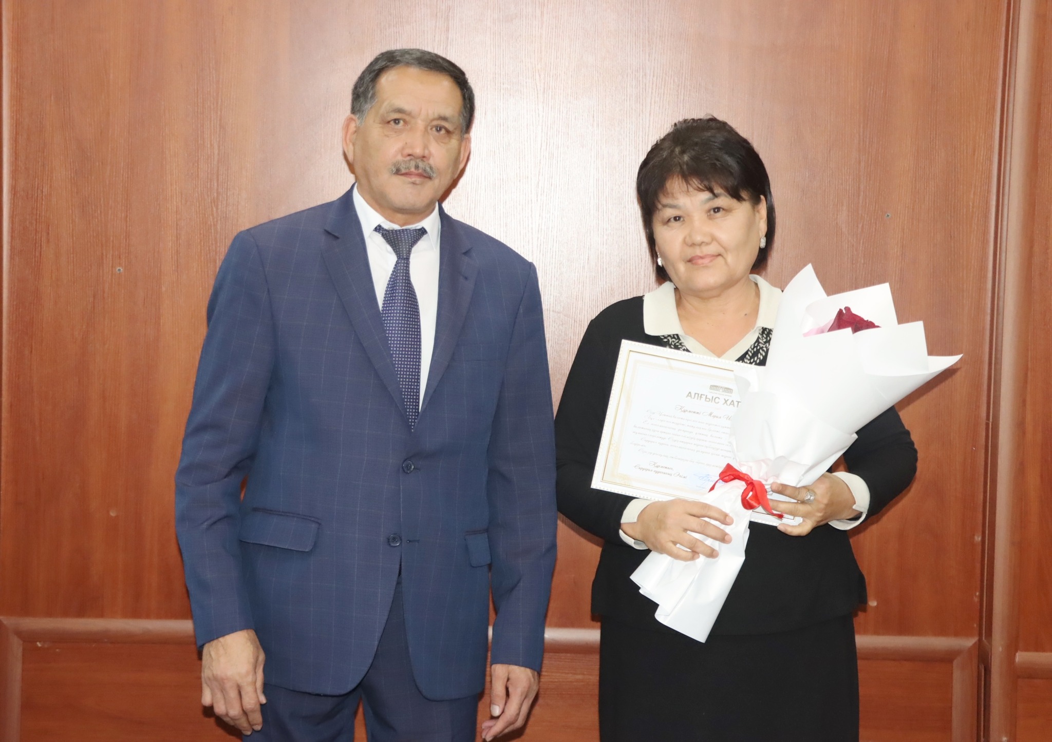 After the congratulations, the district akim presented Z. Rakhymshaeva with the regional “Certificate of Honor.” Additionally, several veterans and employees who contributed to the district’s economic development were awarded letters of appreciation from the region, the regional deputy akim, and the district akim.