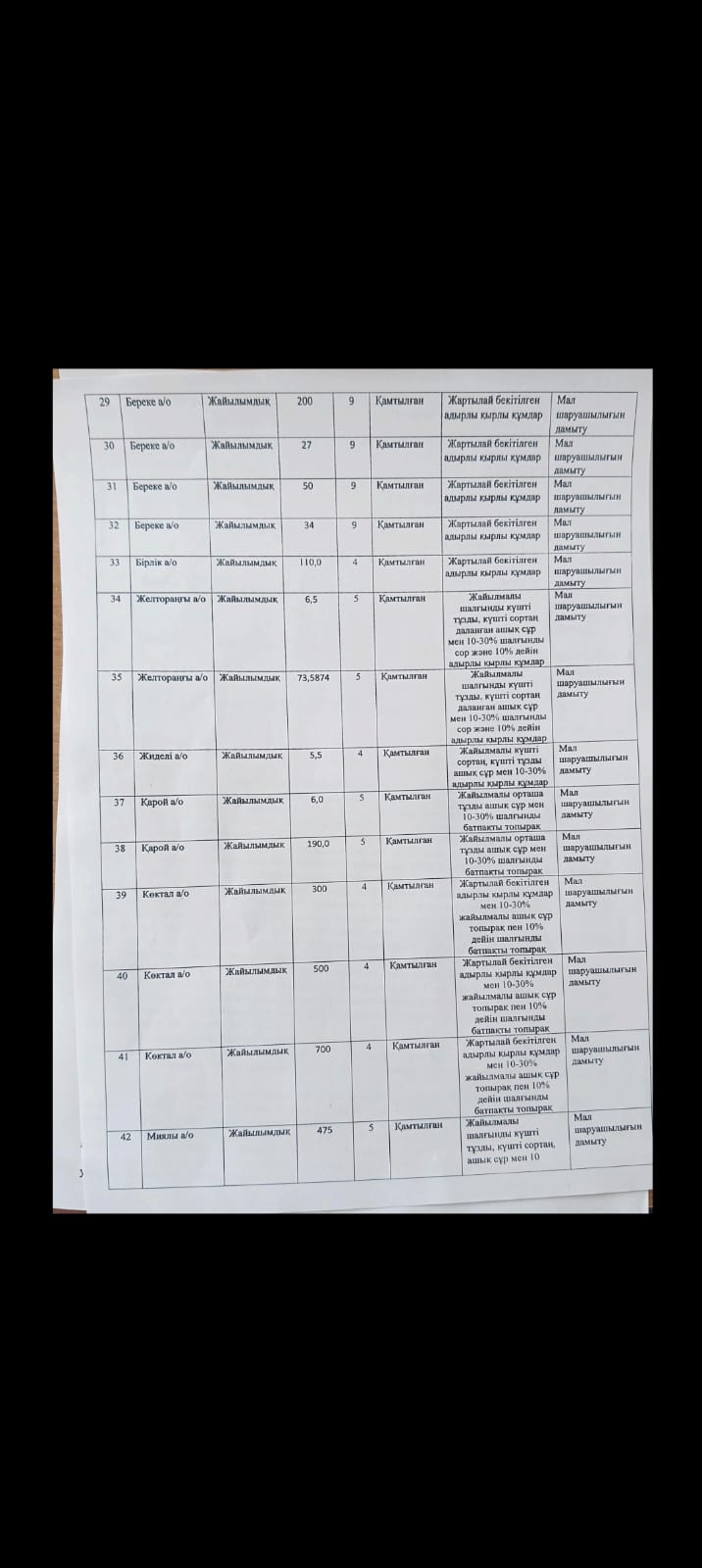The Akimat of Balkhash District of Almaty Region (address: 040300, Almaty Region, Balkhash District, Bakanas village, 64 Kunaev Street) announces a tender for granting a 10-year lease of agricultural land for running a peasant or farm enterprise and for agricultural production, in accordance with the lots listed below.