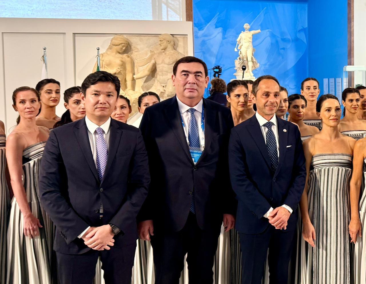 The ceremony was also attended by Mr.Konstantinos Tasoulas, President of the Hellenic Republic, heads of diplomatic missions, and official representatives of the sister cities of Ancient Olympia. The Kazakh side was represented by the honorary guest, Mr. Bakhytzhan Orynbekov, Mayor of Taraz.