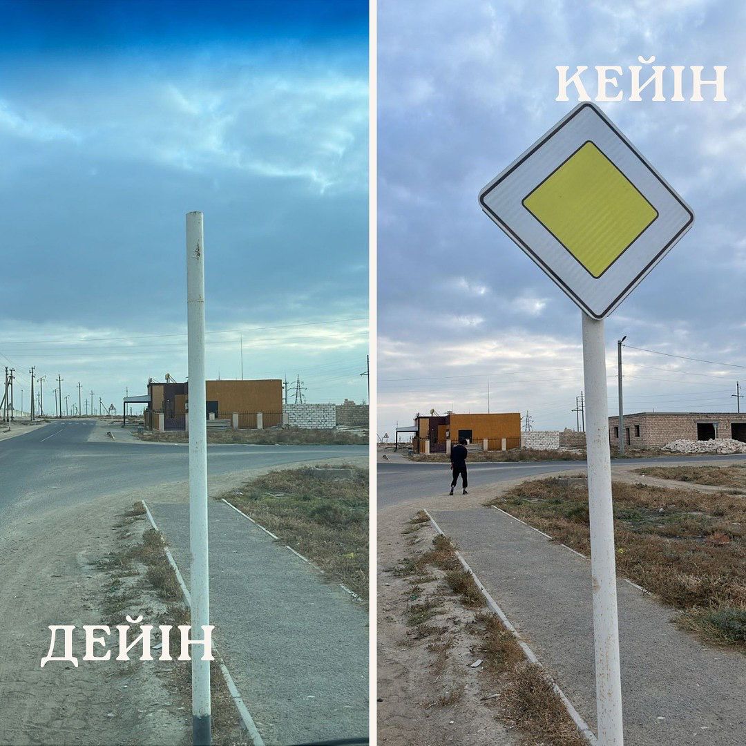 π Work is underway to replace road signs on village streets in the Kyzyltobe rural district as part of the maintenance of village roads.