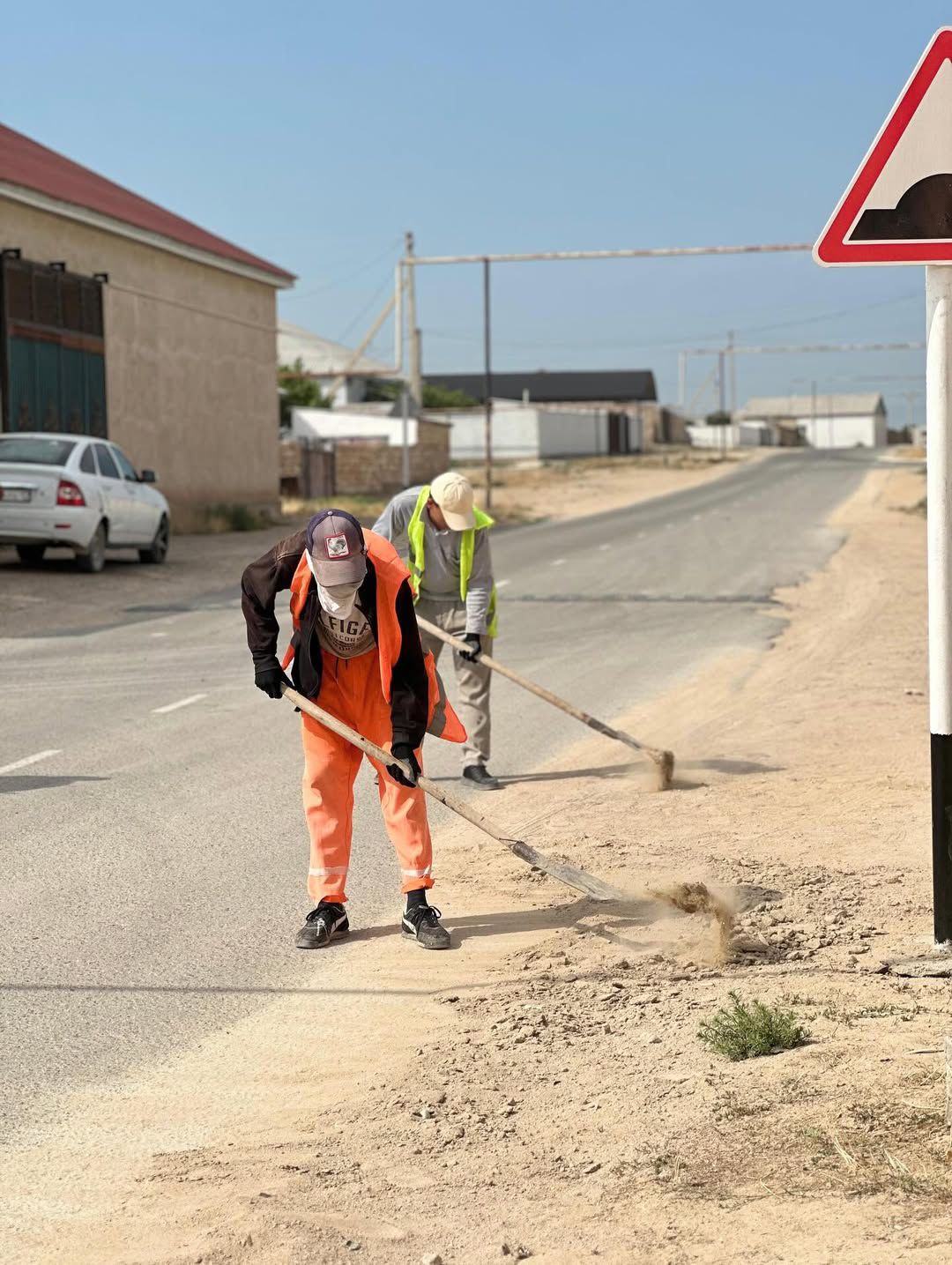 To the inner-village streets of the Daulet rural district.Cleaning is carried out