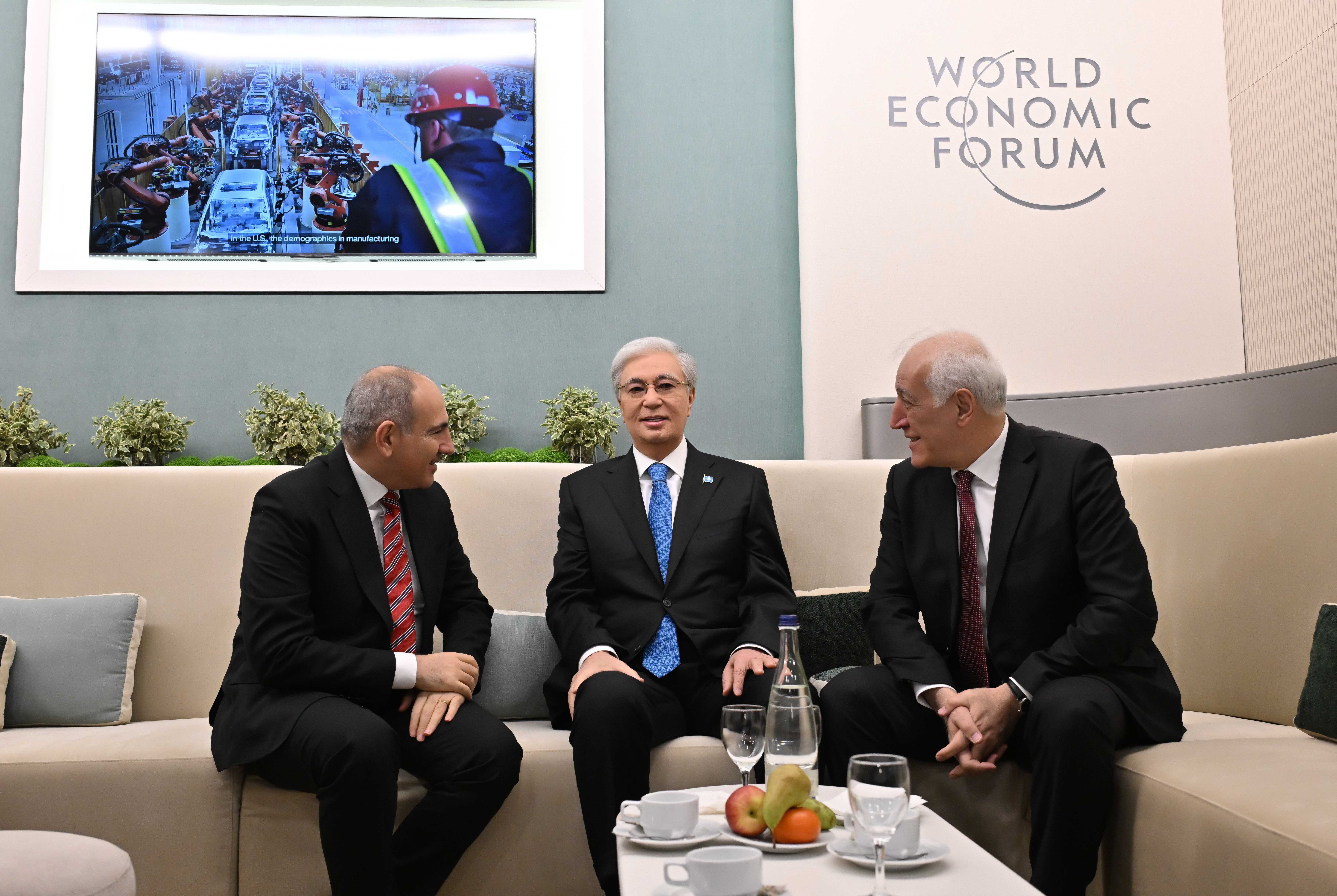 In Davos, President Kassym-Jomart Tokayev held brief talks with President of Armenia Vahagn Khachaturyan, Prime Minister of Armenia Nikol Pashinyan, President of Indonesia Prabowo Subianto, Executive Chairman of the Institute for Global Change Tony Blair, U.S. Secretary of Commerce Howard Lutnick, and FIFA President Gianni Infantino.