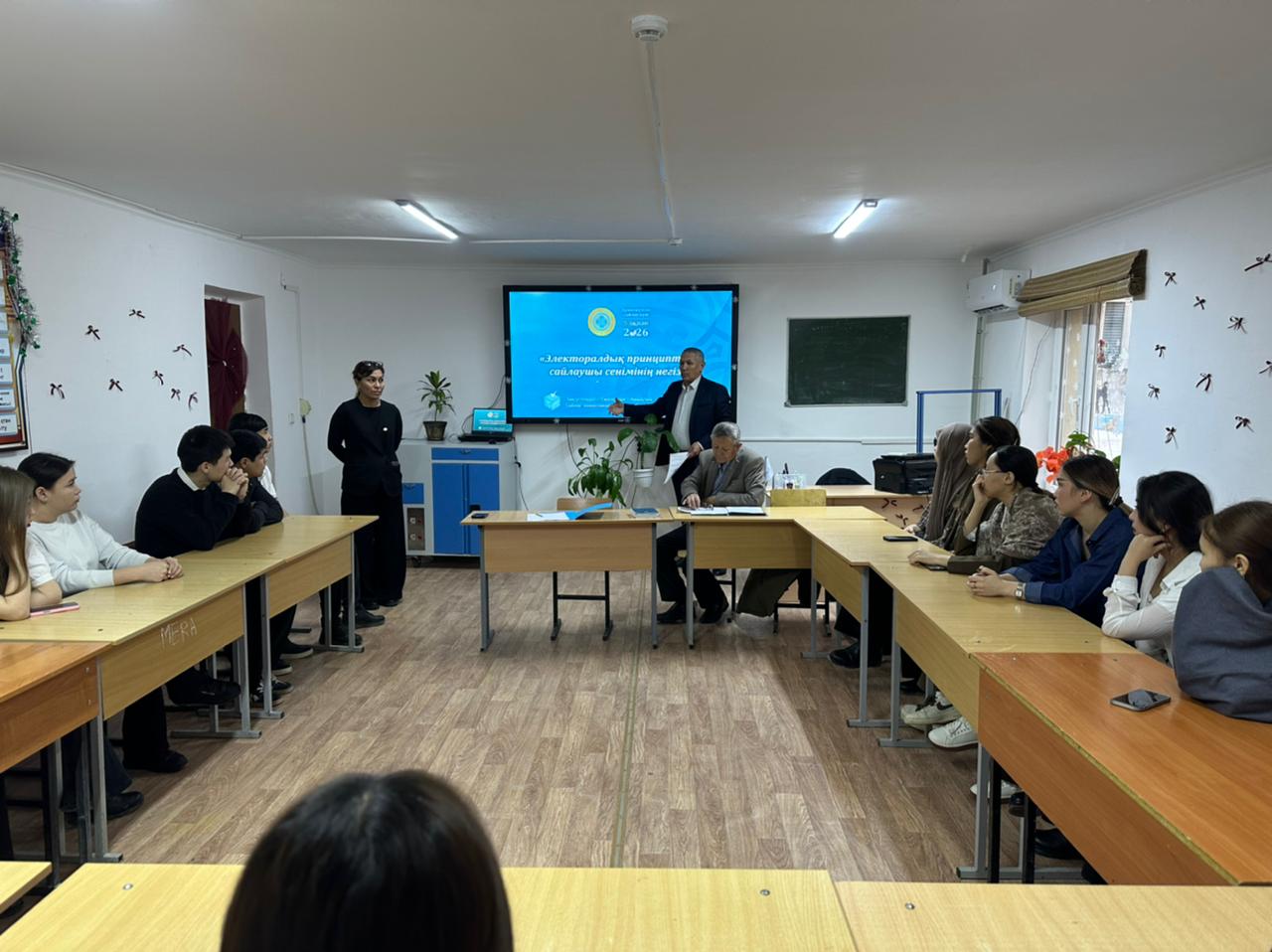 During the event, the Chairperson of the Zhanaozen City Territorial Election Commission, S. Mukhammedov, delivered an opening address, while the thematic lecture was presented by the Deputy Chairperson of the Commission, S. Kalaubayev. In addition, comprehensive answers were provided to students’ questions.
