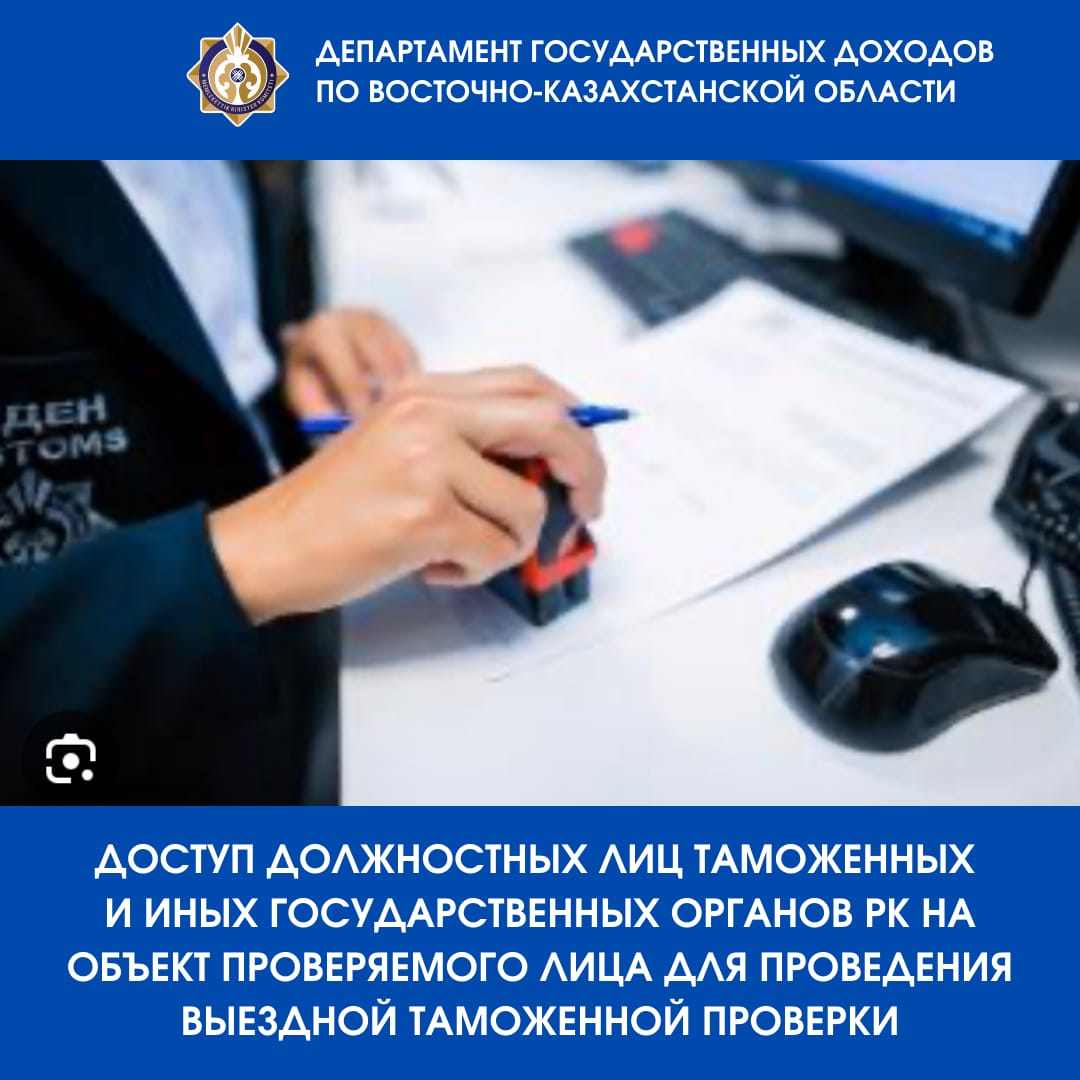 Upon presentation by customs officials of an order (instruction) to conduct an on-site customs inspection, as well as official service IDs or identification cards, the inspected entity is obliged to ensure access for officials of the customs authority and officials of other state authorities of the Republic of Kazakhstan involved in conducting the on-site customs inspection to the premises of the inspected entity (with the exception of residential premises) for the purpose of carrying out the inspection.