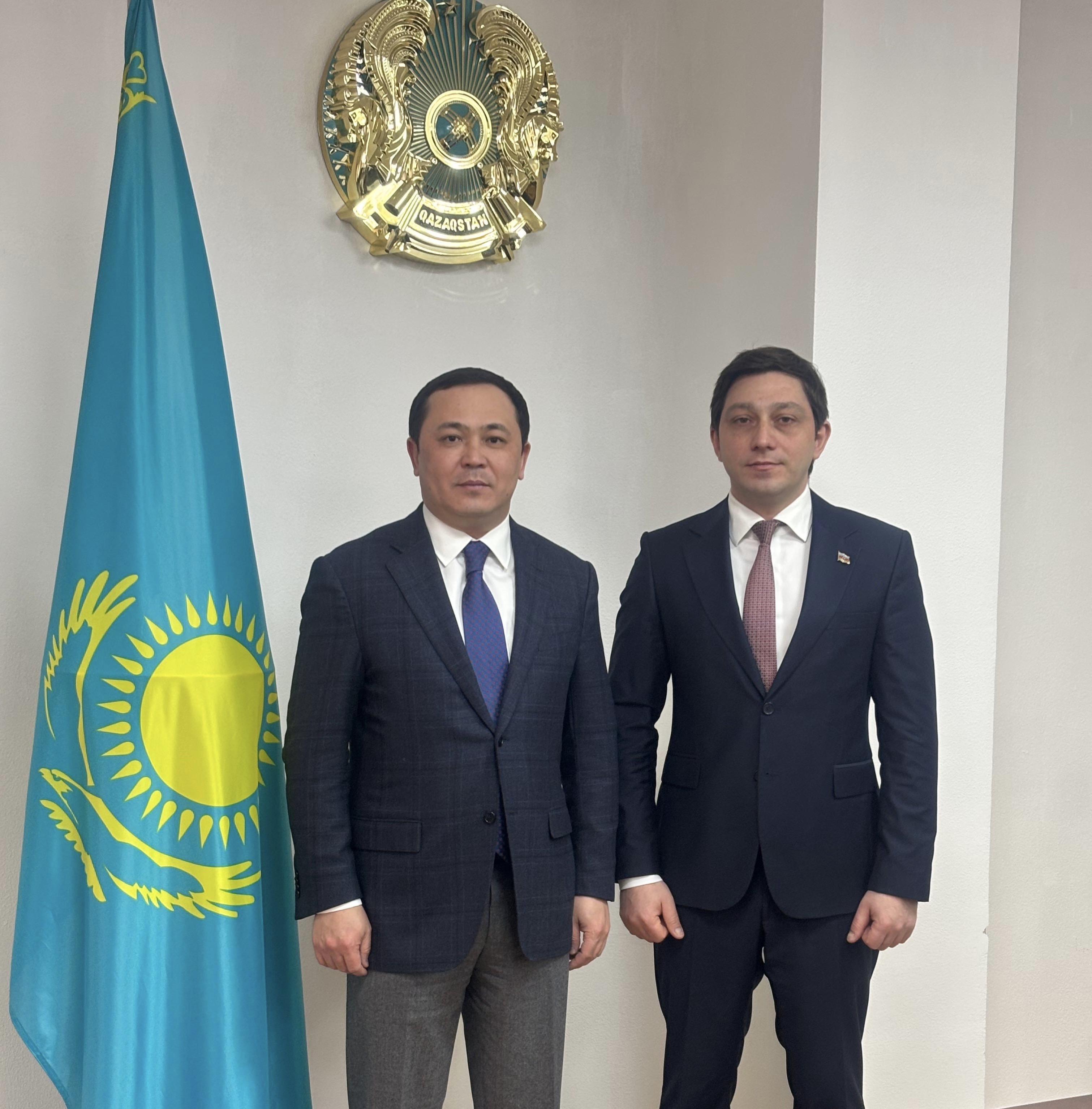 On February 24, 2026, in Almaty, Rashid Yerishev, Deputy Head of the Representative Office of the Ministry of Foreign Affairs of the Republic of Kazakhstan in Almaty held a meeting with Vusal Aliyev, Head of the Representative Office of the Embassy of the Republic of Azerbaijan in Almaty.
