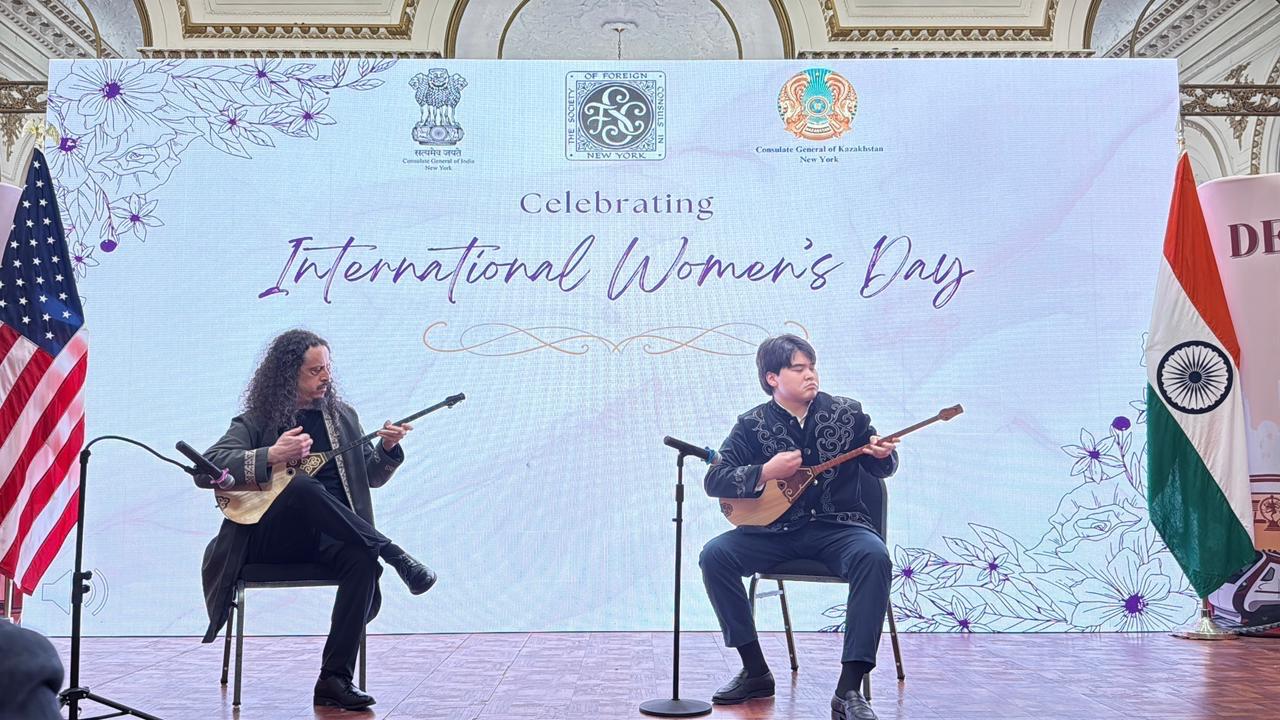 The evening’s cultural program featured music and dance performances reflecting the traditions of participating countries, including Georgia, India, Peru, and Serbia. Kazakhstan’s contribution to the program featured American guitarist and dombra performer Geoff Gerch and Baruch College senior Amanmyrza Zhussipkhan, who performed Kurmangazy’s Adai kyui.
