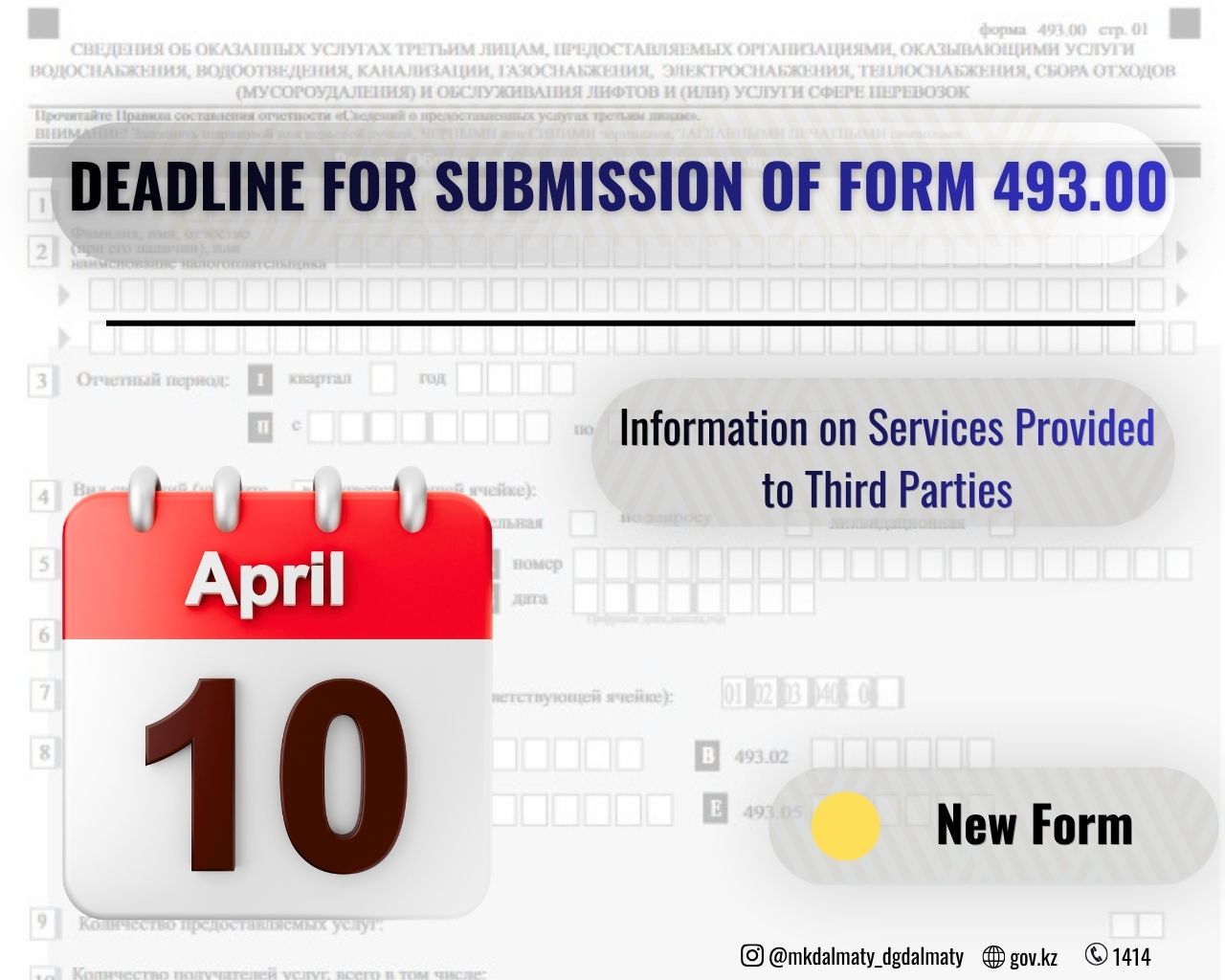 10 April - First Deadline for Submission of Form 493.00 “Information on Services Provided to Third Parties”