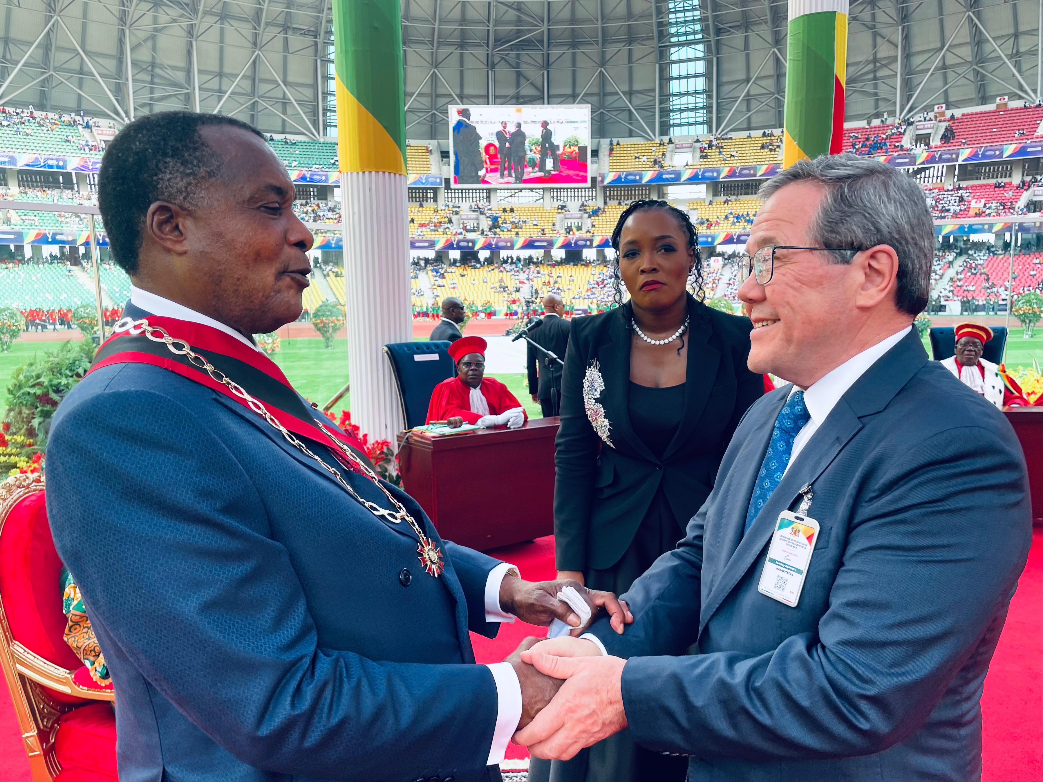 Brazzaville, April 16, 2026 – Extraordinary and Plenipotentiary Ambassador of the Republic of Kazakhstan to the Republic of Kenya and Permanent Representative of the Republic of Kazakhstan to the United Nations Office in Nairobi, Barlybay Sadykov, attended the solemn inauguration ceremony of the newly elected President of the Republic of the Congo, Denis Sassou Nguesso.The inauguration ceremony was attended by heads of state and government from several countries, representatives of international organizations, and members of the diplomatic corps in Brazzaville.During the ceremony, Barlybay Sadykov conveyed warm greetings from the leadership of Kazakhstan and congratulated Denis Sassou Nguesso on his official assumption of office. He wished him success in state-building and the further development of the Congo.The Ambassador reaffirmed Kazakhstan’s interest in further expanding and deepening political dialogue and trade-economic cooperation with the Republic of the Congo. He highlighted the successful visit of President Denis Sassou Nguesso to Kazakhstan, during which the two sides signed a number of bilateral documents in the fields of finance, information and communication technologies (ICT), space, and other areas.As part of the inauguration events, the Kazakh diplomat held a series of meetings with senior officials of the Republic of the Congo. In particular, he met with Françoise Joly, Personal Representative of the President of the Republic of the Congo for Strategic Affairs and International Cooperation, and Guy Nestor Itoua, Secretary-General of the Ministry of Foreign Affairs, Francophonie and Congolese Abroad. The parties discussed topical issues of the regional and international agenda, as well as specific matters of bilateral cooperation between Kazakhstan and the Republic of the Congo. Source : https://www.gov.kz/memleket/entities/mfa-nairobi/press/news/details/1203348?lang=kk