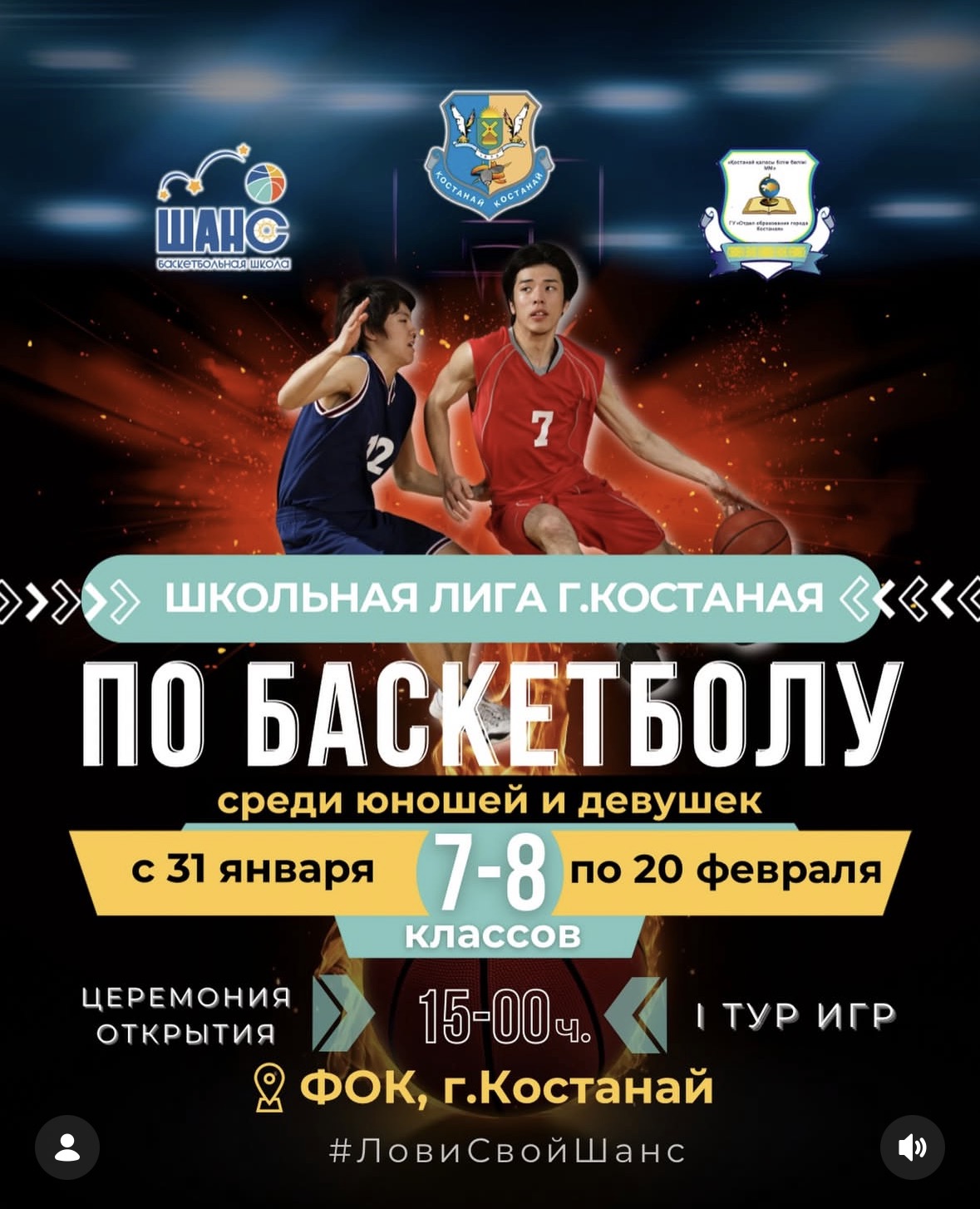 Қостанайда ұлттық Мектеп лигасы аясында өткізілетін 7-8 сынып оқушылары мен қыздар арасында баскетболдан мектеп лигасының қалалық кезеңі басталды.Жарыс 31 қаңтар мен 20 ақпан аралығында өтеді. Бірінші тур Юбилейный шағынауданы, 26а мекенжайында орналасқан дене шынықтыру-сауықтыру кешенінде өтеді.Турнирге қаланың жалпы білім беретін мектептерінің құрама командалары қатысады. Қатысушылар мен жанкүйерлерді керемет матчтар, қарқынды күрес және командалық рухтың көрінісі күтеді.Барлық командаларға сәттілік пен лайықты нәтижелер тілейміз.Ақпарат көзі : https://www.gov.kz/memleket/entities/kostanai-kalasy-akimat/press/news/details/1154052?lang=kk