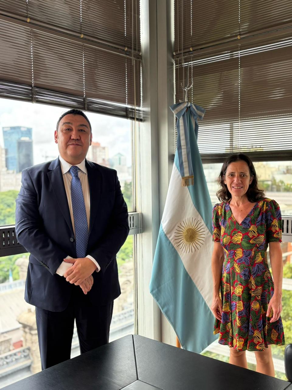 Буэнос-Айрес, 2026 жылғы 6 наурыз – Қазақстанның Бразилиядағы және Аргентинада қоса атқарушы Елшісі Болат Нүсіпов Аргентинаға жұмыс сапары аясында Аргентина Сыртқы істер министрлігінің халықаралық экономикалық мәселелері жөніндегі директоры Сильвина Мерфи және СІМ-нің саяси директоры, Елші Марсия Леваджимен кездесу өткізді.Кездесу барысында аргентиналық тарапқа мемлекеттің саяси-құқықтық жүйесін жан-жақты жетілдіруге және институционалдық дамудың жаңа кезеңіне өтуді аяқтауға бағытталған алдағы конституциялық өзгерістер жөнінде ақпарат берілді. Сонымен қатар, жаңа Конституция жобасын қабылдау жөніндегі республикалық референдум 2026 жылғы 15 наурызға белгіленгені және аталған референдум барысында ел азаматтары жаңартылған конституциялық үлгі бойынша түпкілікті шешім қабылдайтыны жеке атап өтілді.Осы тұрғыда тараптар екіжақты күн тәртіптегі міндеттерді іске асыруда қол жеткізілген бірқатар нәтижелерді қанағаттанушылықпен атап өтті. Атап айтқанда, 2024 жылы Аргентина Парламентінде «Қазақстан–Аргентина» парламенттік достық тобының құрылғаны және оның қазақстандық серіктестермен алғашқы бірлескен онлайн-отырысы 2024 жылғы 18 желтоқсанда өткендігі айтылды. Сонымен қатар, 2025 жылы «Қазақстанның Ет одағы» мен «Аргентинаның сиыр етін ілгерілету жөніндегі ұлттық институтының» тең төрағалығымен «Қазақстан–Аргентина» Іскерлік кеңесінің құрылғаны, сондай-ақ 2026 жылы «Қазақстан–Аргентина» сауда-өнеркәсіп палатасының құрылғаны атап өтілді.Қазақстан Елшісі кездесу соңында аргентиналық тарапты өздеріне қолайлы мерзімде кезекті саяси консультацияларын өткізу үшін Астана қаласына келуге шақыруын растады.Ақпарат көзі : https://www.gov.kz/memleket/entities/mfa-brazil/press/news/details/1176906?lang=kk