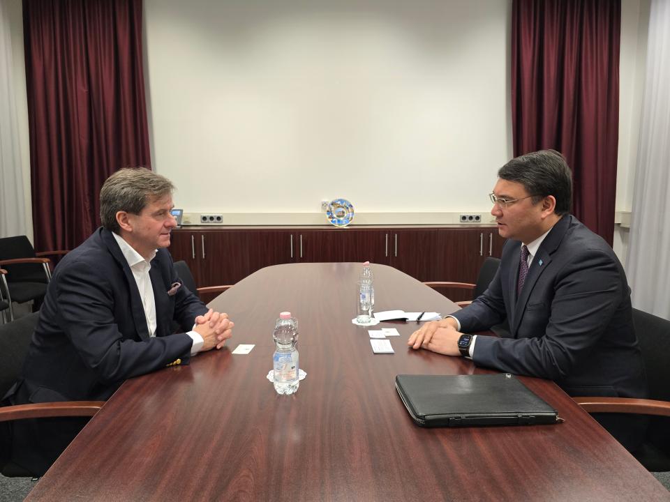 Вена, 2025 жылғы 5 желтоқсан – Қазақстан Республикасының Сыртқы істер министрі Ермек Көшербаев Вена қаласына сапары аясында Аустрия Республикасының Парламенті Ұлттық кеңесінің президенті Вальтер Розенкранцпен кездесу өткізді.Cұхбат барысында қазақ-аустрия қарым-қатынастарының қазіргі күйі мен келешегі, Еуропалық одақпен серіктестікті тереңдету және ЕҚЫҰ аясындағы өзара іс-қимыл мәселелері талқыланды.Министр екіжақты ынтымақтастықтың жоғары қарқынын атап өтіп, түрлі салалардағы байланыстарды одан әрі кеңейту маңыздылығына назар аударды.Аустрия тарапы Қазақстан мен ЕО арасындағы белсенді саяси диалогты және Астананың халықаралық күн тәртібіндегі өзекті мәселелер бойынша сындарлы ұстанымын жоғары бағалады.Тараптар екіжақты парламентаралық ынтымақтастығын жандандыруға уағдаласып, тұрақты кездесулерді қолдауға ниет білдірілді.Ақпарат көзі : https://www.gov.kz/memleket/entities/mfa-vienna/press/news/details/1121134?lang=kk