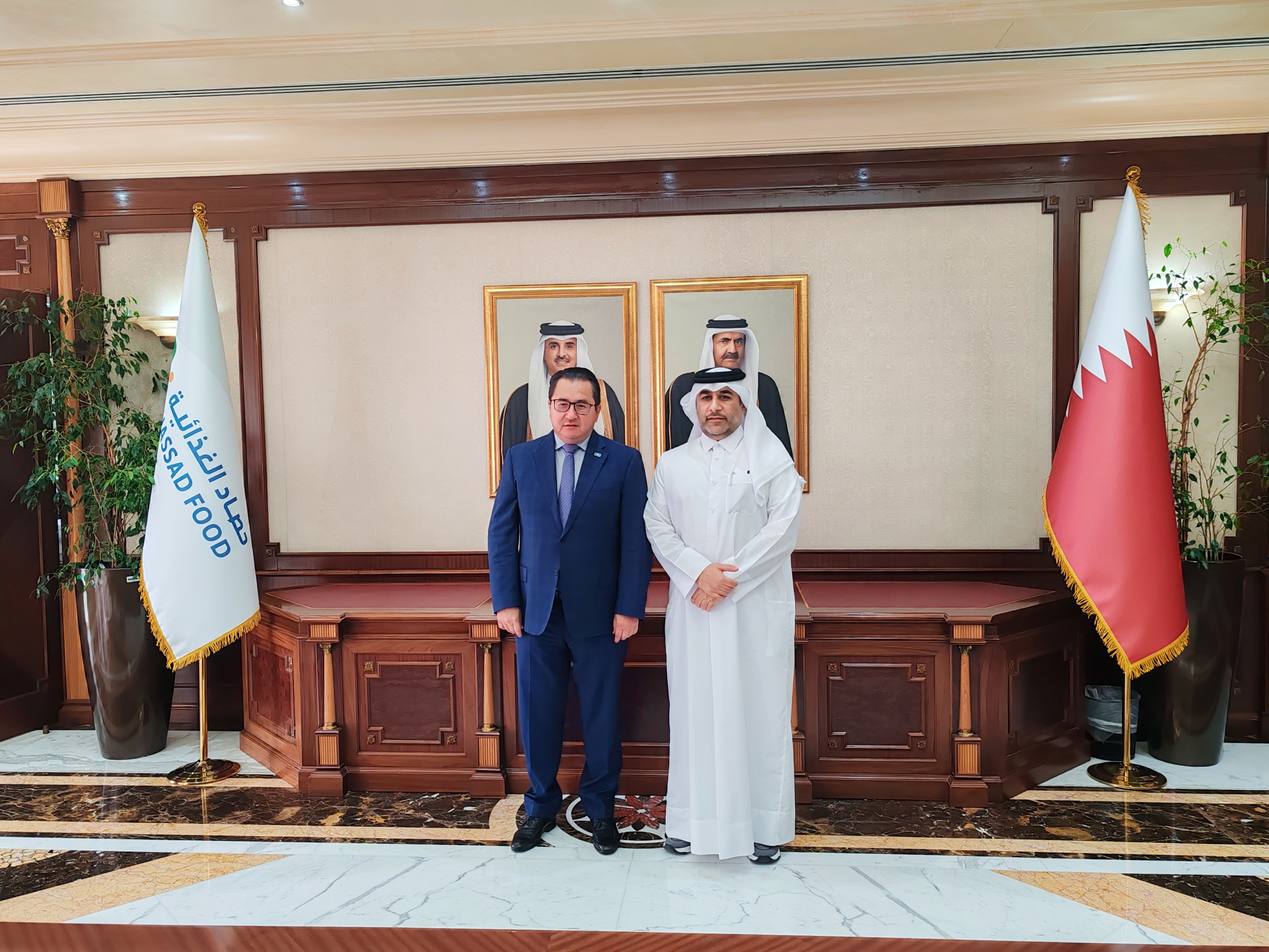 Доха, 2025 жылғы 23 қыркүйек – Қазақстан Республикасының Қатар Мемлекетіндегі Елшісі Арман Исағалиев Қатардың мемлекеттік Hassad Food компаниясының бас атқарушы директоры Әли Хиләл Әл-Кауаримен кездесті.Кездесу барысында тараптар ауыл шаруашылығы саласындағы бірлескен жобаларды жүзеге асыру перспективаларын және азық-түлік қауіпсіздігін нығайту жолдарын талқылады. Осы ретте, Қатардың 2030 жылға дейінгі ұлттық азық-түлік қауіпсіздігі стратегиясы аясында Қазақстан өнімдерін жеткізуді кеңейту жолдарына ерекше назар аударылды.Елші Арман Исағалиев Қазақстан Қатардың сенімді серіктесі ретінде нарықта сұранысқа ие ауыл шаруашылық өнімдерін тұрақты жеткізуді қамтамасыз ете отырып, өзара ұзақ мерзімді тиімді ынтымақтастықты құруға дайын екенін атап өтті.Сондай-ақ, Елші Қазақстан Президенті жуырдағы Жолдауында агроөнеркәсіптік кешенді стратегиялық басымдық ретінде анықтағанын, өңдеуге, цифрлық технологияларға және агрохабтарды дамытуға басты мән бергенін хабарлады. Қазақстандық дипломаттың айтуынша, бұл бағыттар Қатардың азық-түлік қауіпсіздігі мен инновациялық ауыл шаруашылығы саласындағы мақсаттарымен үйлесім тауып, бірлескен жобалар мен тәжірибе алмасуға жаңа мүмкіндіктер ашады.Тараптар Қазақстан Президентінің 2024 жылы Дохаға мемлекеттік сапары барысында және биыл Астанада өткен Бірлескен үкіметаралық комиссияның 7-ші отырысында сауда айналымын арттыру және ынтымақтастық бағыттарын кеңейту жөнінде қол жеткізілген уағдаластықтардың екіжақты байланыстарды дамытуға қосымша серпін бергенін атап өтті. Сонымен қатар, кездесуде Қазақстандағы инвестициялық климаттың ауыл шаруашылығы саласында ірі жобаларды іске асыруға және инвестиция тартуға қолайлы екені айтылды.Кездесудің қорытындысы бойынша тараптар ынтымақтастықты дамыту жөнінде практикалық қадамдарды, соның ішінде жеткізу маршруттарын және логистикалық шешімдерді оңтайландыруды жалғастыруға келісті. Ақпарат көзі : https://www.gov.kz/memleket/entities/mfa-doha/press/news/details/1073153?lang=kk