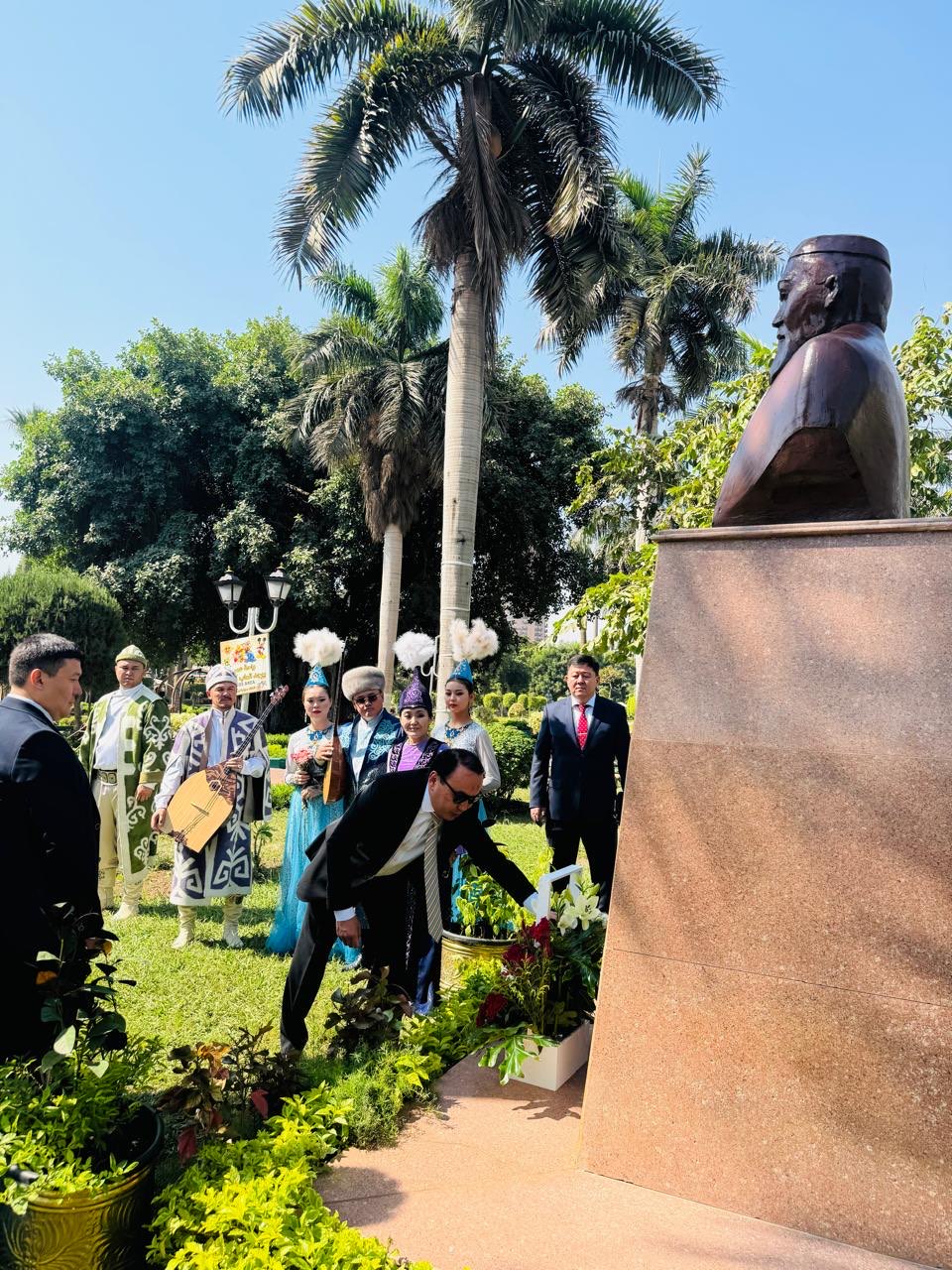 Каир, 2025 жылғы 20 тамыз – Мысыр астанасыдағы «Бостандық» саябағында орналасқан қазақтың көрнекті ақыны, ойшыл Абай Құнанбайұлының ескерткішіне оның туғанына 180 жыл толуына орайластырылған салтанатты түрде гүл шоқтарын қою рәсімі өтті.Аталған шара Қазақстанның Мысырдағы Елшісі Асқар Жеңіс және Каирдегі «Citadel Festival» халықаралық іс-шарасы аясында өнер көрсеткен «Жетісу облысының Дәнеш Рақышев атындағы филармониясының» өнер майталмандарының қатысуымен жүзеге асырылды.Іс-шара Абайдың ескерткішіне гүл шоқтарын қоюдан басталды. Өз кезегінде, Елші Абайдың мәдени мұрасы, оның қазақ мәдениеті мен әдебиетінің дамуына қосқан үлесі, сондай-ақ оның шығармашылығының қазіргі заманғы әлемдегі өзектілігіне тоқталды. Іс-шараға қатысқан өнерпаздар Абайдың бірқатар өлеңдерін ұлттық аспаптарда сүйемелдеп, әндерін шырқады.Осыған дейін «Жетісу облысының Дәнеш Рақышев атындағы филармониясының» өнер майталмандары Қазақстан Республикасының Мысыр Араб Республикасындағы Елшілігінің қолдауымен 2025 жылғы 18 тамызда Каирде өткен «Citadel Festival» халықаралық іс-шарасына қатысты. Аталған іс-шара Мысырдың Мәдениет министрлігінің қолдауымен, «Cairo Opera House» жергілікті беделді театры тарапынан ұйымдастырылды.Қазақстан мен Мысыр арасындағы мәдени байланыстарды дамытуға үлкен серпін берген іс-шара өте жоғары деңгейде өтті.Қазақтың бай фольклорының бай мұрасын көрсете білген өнерпаздар жергілікті халықтың ыстық ықыласына бөленді.Қазақ өнерпаздардың шығармашылығына деген Мысыр халқының қызығушылығын ескере отырып, МАР Мәдениет министрлігі ү.ж. 20 тамызда Ніл өзенінің бойында орналасқан әйгілі «Мысыр қоғамдық кітапханасының» сахнасында қосымша концерт ұйымдастырды.Аталған концертке жергілікті зиялы қауым және беделді БАҚ өкілдері қатысып, өткен іс-шара туралы мақалалар жарық көрді.Өз кезегінде, Елшілік пен ұйымдастырушы тарап осы бағыттағы жұмыстарды белсенді жалғастыруға уағдаласты.Учитывая интерес египетского народа к творчеству казахских артистов, Министерство культуры АРЕ организовало дополнительный концерт 20 августа т.г. на сцене знаменитой «Египетской публичной библиотеки», расположенной на берегу реки Нил.На концерте присутствовали представители местной интеллигенции и авторитетных СМИ, о мероприятии были опубликованы статьи.В свою очередь Посольство и организаторы договорились активно продолжить работу в этом направлении.Ақпарат көзі : https://www.gov.kz/memleket/entities/mfa-cairo/press/news/details/1055627?lang=kk