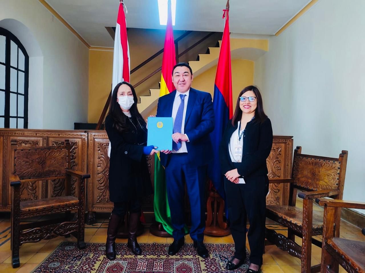 Сукре, 2025 жылғы 5 тамыз – Боливияның тәуелсіздігінің 200 жылдығына арналған салтанатты отырысқа қатысу мақсатында Қазақстан Республикасының Бразилиядағы Елшісі Болат Нүсіповтың Боливияға жұмыс сапары аясында Боливия Сыртқы істер министрлігінің Саяси істер жөніндегі директоры Елші Майра Монтеромен кездесу өтті.Қазақстан Елшісі Мемлекет басшысы Қасым-Жомарт Тоқаевтың Боливия Президенті Луис Альберто Арсеге ел тәуелсіздігінің 200 жылдығына орай жолдаған құттықтау хатын тапсырып, Боливия басшылығына игі тілектерін жеткізді.Кездесу барысында тараптар екіжақты және көпжақты күн тәртібіндегі өзекті мәселелерді талқылап, Қазақстан мен Боливия арасындағы жан-жақты қатынастарды одан әрі нығайтуға ниетті екенін растады. Саяси диалогты кеңейту және сауда-экономикалық ынтымақтастықты дамыту мәселелеріне ерекше назар аударылды. Осы тұрғыда екі ел арасындағы алғашқы саяси консультациялардың мерзімі мен мазмұны бойынша пікір алмасу өтті.Келіссөздер қорытындысы бойынша тараптар екі елдің дипломатиялық өкілдіктері деңгейінде жұмыс байланыстарын қолдап отыруға және екі елдің сыртқы саяси ведомстволары арасында саяси консультациялар тетігін таяу уақытта іске қосуға мүдделілік білдірді.Ақпарат көзі : https://www.gov.kz/memleket/entities/mfa-brazil/press/news/details/1046179?lang=kk