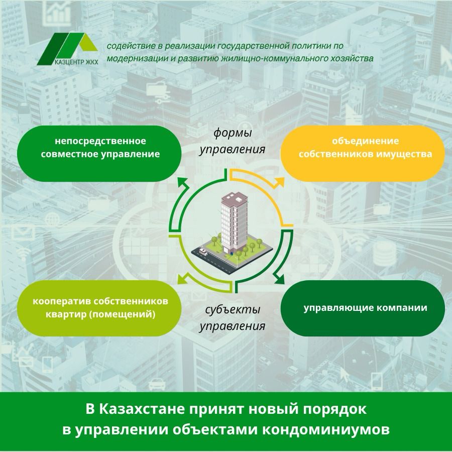 Қазақстанда тұрғын үй-коммуналдық шаруашылығын тұрақты дамыту, энергетикалық және коммуналдық секторды жаңғырту мақсатында көппәтерлі тұрғын үйлерді (КТҮ) басқарудың жаңа тетігі қабылданып, іске асырылуда.Көппәтерлі тұрғын үйлерді басқару субъектілері маңызды функция атқарады, сол себепті олардың мүлік иелері алдындағы жауапкершілігін арттыру қажеттігі туындады.Бүгінде Қазақстан Республикасының заңнамасына сәйкес кондоминиум нысандарын басқару субъектілері мыналар болып табылады:Басқарушы компания (БК)Пәтер иелері кооперативі (ПИК)Бұл екі басқару түрі де заңды және тең құқықты механизмдер болып саналады. Олар тұрғындарға өз үйінің ерекшелігіне, қаржылық мүмкіндіктеріне және тұрғындардың басқару процесіне қатысу дайындығына қарай басқару үлгісін таңдауға мүмкіндік береді. Бұл ұйымдар техникалық пайдалану ережелері мен қаржылық тәртіпті сақтау іс-шараларын жүзеге асыруда маңызды рөл атқарады.Егер мүлік иелері бірлестігі (МИБ) түріндегі басқару формасы бар болса, ол басқарушы компания немесе ПИК жиналысы хаттамасының негізінде бекітіледі.МИБ басқару қызметін шарт негізінде жүзеге асырады. ПИК жағдайында — типтік жарғы мен шарттың талаптарын сақтау міндетті. Жиналыс хаттамасы мен шартта жылдық шығындар мен жұмсалатын қаражаттың сметасы бекітілуі тиіс, өйткені тариф осы сметаға сәйкес айқындалады. Сондай-ақ тараптардың міндеттері мен жауапкершіліктері нақты белгіленуі қажет.Егер меншік иелері тікелей басқару нысанын (ТБН) таңдаса, онда басқару меншік иелерінің жиналысы хаттамасының негізінде жүзеге асырылады. Бұл хаттамада басқару функцияларын орындайтын нақты тұлға немесе ұйым уәкілеттендіріледі. Сонымен қатар, бұл хаттама дауларды қарау кезінде ресми құжат ретінде пайдаланылады және әрбір басқару нысанына жеке қабылдануы тиіс. Бұл жағдайда қызметтерге жұмсалатын жеке сметалар мен олардың мерзімділігі сақталады. Сондай-ақ әрбір үйден бастамашыл топ құру міндеті де сақталады — егер тұрғындар ПИК құрамына ену туралы шешім қабылдаса, қайта тіркеу кезінде бұл талап орындалуы тиіс.ПИК-ке заң қабылданған күннен бастап бір жыл ішінде қайта тіркеуден өтіп, әрбір нысан бойынша жиналыстар өткізу міндеті жүктеледі. Бұл жиналыстарда басқару мен үйді күтіп ұстау шарттары туралы шешімдер қабылдануы тиіс.Барлық басқару субъектілері КТҮ басқару және күтіп ұстау бойынша қызмет көрсетуге құқылы.Әрбір үйге жеке банк шотын ашу міндетті талап ретінде белгіленді. Бұл қаржылық ашықтықты қамтамасыз етеді, мақсатсыз шығындарды болдырмайды және тұрғындарға өз қаржысын бақылауға мүмкіндік береді.Заңда сондай-ақ уақытша басқарушы компаниялардың жұмыс істеу мүмкіндігі қарастырылған — бұл жаңа үйлер үшін де, басқару нысанын немесе қызмет көрсету тарифін әлі таңдамаған үйлер үшін де қолданылады.Уақытша басқарушы компанияны құрылыс салушы тұрғындар қоныстана бастаған сәттен бастап, меншік иелері шешім қабылдағанға дейінгі аралықта 2 жылға дейінгі мерзімге тағайындай алады. Бұл кезеңде үйдің үздіксіз жұмыс істеуі қамтамасыз етілуі тиіс.Егер басқару нысаны таңдалмаған болса, тұрғын үй инспекциясы МИБ немесе ТБН құрылғанға дейін мерзімсіз уақытша басқарушы компания тағайындауға құқылы. Мұндай тәсіл жыл сайын конкурс өткізу қажеттілігін жояды, тұрғын үй қорын тұрақты күтіп ұстауды қамтамасыз етеді және үй