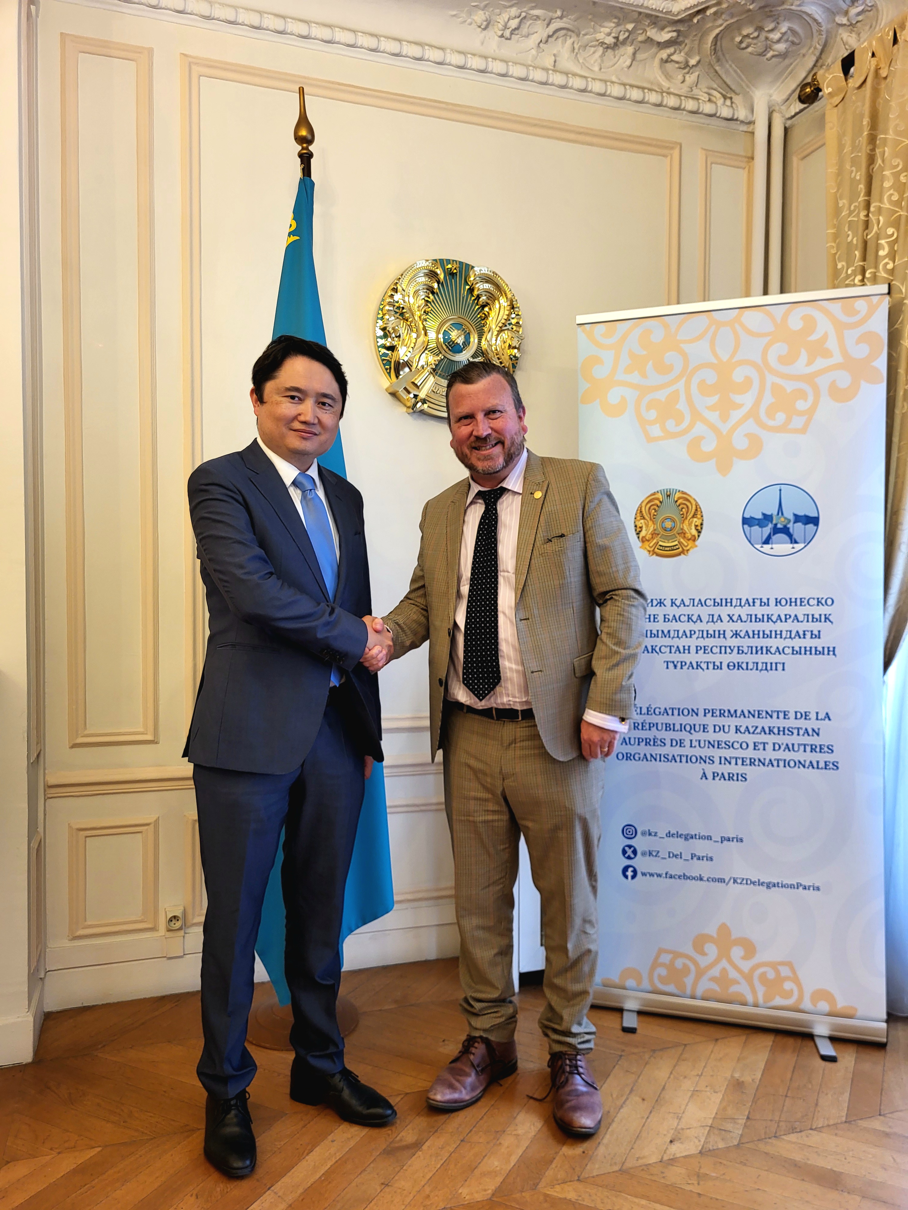 Париж, 2025 жылғы 23 шілде – Қазақстанның Париждегі халықаралық ұйымдар жанындағы Тұрақты өкілі Асқар Абдрахманов Халықаралық заңнамалық метрология ұйымы (ХЗМҰ) Бюросының директоры Энтони Доннеланмен кездесті.Бүгінде 131 мүше мен бақылаушы мемлекетті біріктіретін үкіметаралық ұйымның басшысы Қазақстан Республикасына метрологтардың жаһандық қауымдастығындағы белсенді рөлі мен Дүниежүзілік метрология күніне ЮНЕСКО жүйесінде жоғары мәртебе беруін қоса алғанда халықаралық деңгейде көрсетіп жүрген ұдайы қолдауы үшін алғыс білдірді.Отандық дипломат өз кезегінде ұлттық экономиканың дамуы үшін ерекше маңызды бұл салада түрлі елдердің мамандары арасындағы нақты ынтымақтастықты жалғастыруға Қазақстанның бейілділіген қайта қуаттады.Осыған байланысты тараптар 2025 ж. қазанда Парижде өтетін Ұйымның жоғарғы басқарушы органы болып табылатын ХЗМҰ Конференциясының 17-сессиясына Қазақстанның мазмұнды қатысуына дайындық мәселелері бойынша пікір алмасты.Анықтама: Халықаралық заңнамалық метрология ұйымы (ХЗМҰ) 1955 жылы осы Ұйымды құру туралы Конвенцияға сәйкес құрылған. Қазіргі уақытта ұйым құрамына 65 мүше мемлекет (оның ішінде Қазақстан Республикасы) және 66 бақылаушы мемлекет кіреді. Ұйымның негізгі мақсаты – елдер қолданатын заңнамалық метрология рәсімдерін үйлестіру. ХЗМҰ ұлттық және өңірлік талаптарды әзірлеу бойынша метрологиялық ұсынымдар береді. Бұл талаптар өлшеу құралдарын заңнамалық метрология қолданатын нақты салаларда, соның ішінде, сауда, денсаулық сақтау, экология, кедендік бақылау, пошта қызметі, өндіріс пен көлік қауіпсіздігі және басқа да салаларда – тиімді қолдану мәселелерін қамтиды.Ақпарат көзі : https://www.gov.kz/memleket/entities/mfa-unesco/press/news/details/1040593?lang=kk