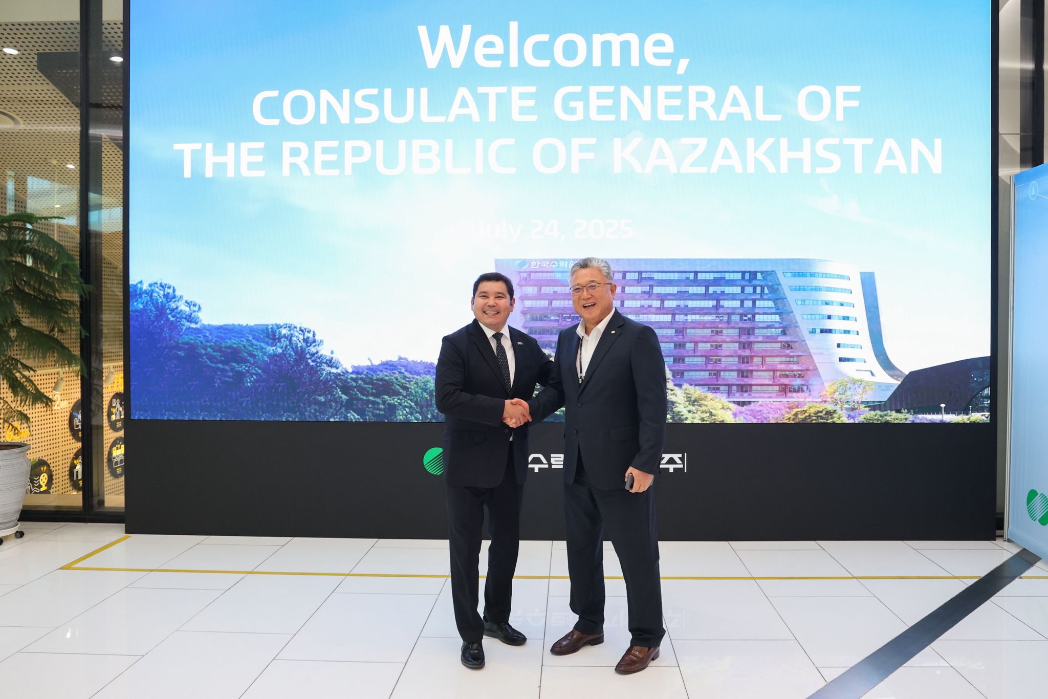 Пусан, 2025 жылғы 24 шілде – 🇰🇿🤝🇰🇷 Кёнджу қаласындағы Корея Республикасының Су және Атом Энергетикасы Корпорациясының (KHNP) бас кеңсесінде KHNP Вице-президенті Пак Ин Сик пен Қазақстан Республикасының Пусан қаласындағы Бас консулы Аслан Аскардың жылы әрі мазмұнды кездесуі өтті.Кездесу барысында тараптар Қазақстан мен Корея арасындағы атом энергетикасы саласындағы ынтымақтастықты нығайту мүмкіндіктерін талқылады.Пусан, 24 июля 2025 года – 🇰🇿🤝🇰🇷 В главном офисе Корейской корпорации водных и атомных источников энергии (KHNP) в городе Кёнджу состоялась тёплая и содержательная встреча Вице-президента KHNP господина Пак Ин Сика с Генеральным консулом Республики Казахстан в городе Пусан господином Асланом Аскаром.В ходе встречи стороны обсудили перспективы укрепления сотрудничества между Казахстаном и Кореей в сфере атомной энергетики.Busan, July 24, 2025 – 🇰🇿🤝🇰🇷 A warm and constructive meeting was held at the headquarters of Republic of Korea Hydro & Nuclear Power (KHNP) in Gyeongju between Vice President Park In-sik and the Consul General of the Republic of Kazakhstan in Busan, Aslan Askar.The sides discussed prospects for strengthening cooperation between Kazakhstan and Korea in the field of nuclear energy.2025년 7월 24일, 부산 – 🇰🇿🤝🇰🇷 경주에 위치한 한국수력원자력(KHNP) 본사에서 박인식 본부장님과 ASLAN ASKAR 주부산 카자흐스탄 총영사 간의 따뜻하고 의미 있는 만남이 있었습니다.양측은 원자력 에너지 분야에서 카자흐스탄과 한국 간 협력 강화 방안에 대해 논의했습니다.Ақпарат көзі : https://www.gov.kz/memleket/entities/mfa-busan/press/news/details/1040347?lang=kk