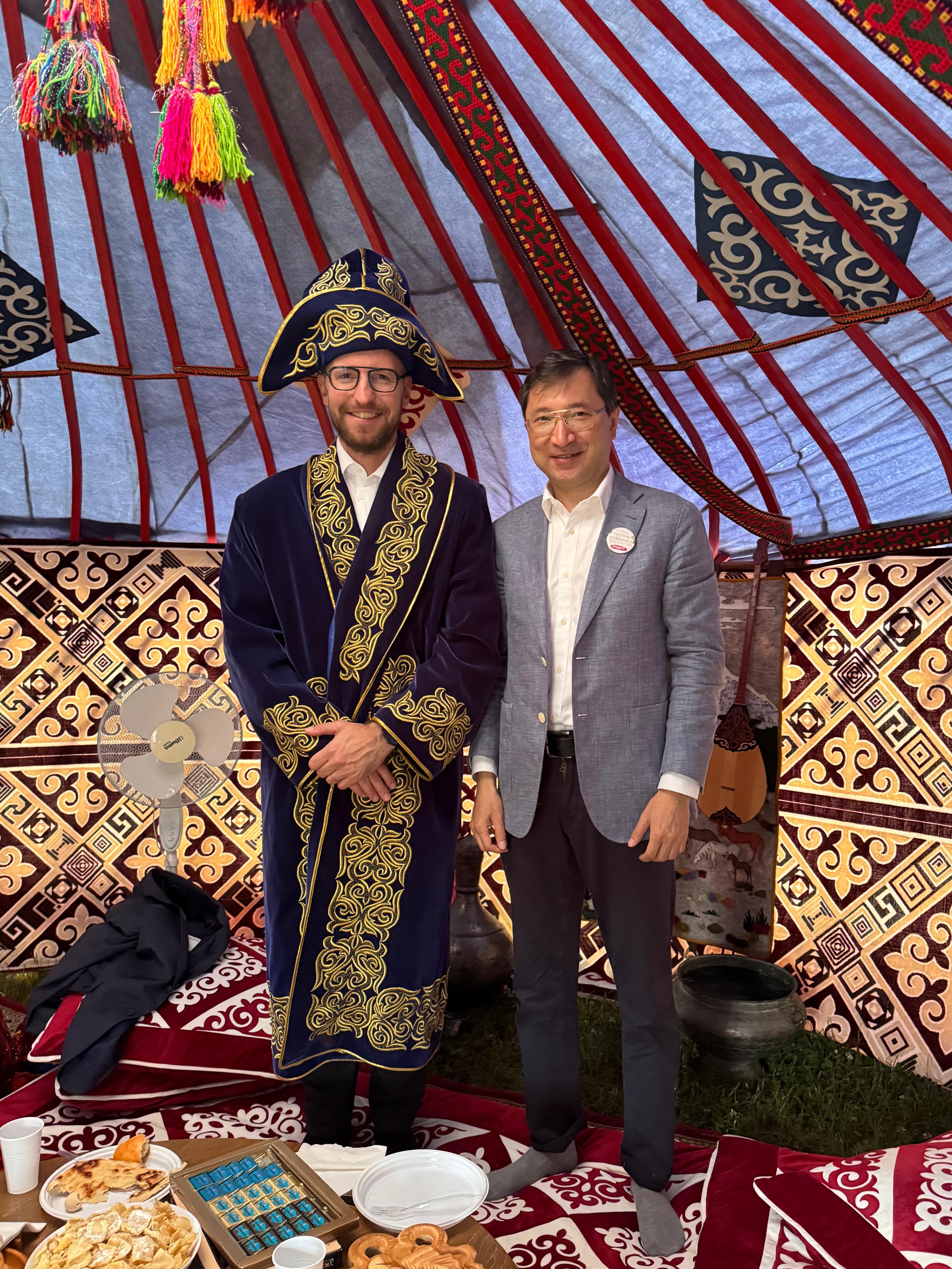 Прага, 2025 жылғы 7 маусым – Қазақстанның Чехиядағы Елшілігі Прагада өткен 8-ші Елшіліктер фестиваліне қатысты. Биыл бұл ірі халықаралық шараға 56 елдің дипломатиялық өкілдіктері қатысып, өз халқының мәдени дәстүрлерін, қолөнер бұйымдары мен аспаздық мұрасын ұсынды.Фестивальдің ресми ашылу салтанатына Чехия Сыртқы істер министрі Ян Липавский, Прага қаласының мэрі Богуслав Свобода, Прага 6 муниципалдық ауданының мэрі Якуб Старек, шет мемлекеттердің елшілері мен іскерлік қауым өкілдері қатысты.Қазақстан екінші жыл қатарынан дәстүрлі киіз үй тігіп, фестиваль қонақтарының басты назарын аударды. Күні бойы көптеген қонақтар оның ішкі көрінісі мен ұлттық нақыштағы безендірілуін тамашалап, қазақ халқының көшпелі мәдениетімен жақынырақ танысуға мүмкіндік алды.Іс-шараның құрметті қонақтары – Сыртқы істер министрі Я.Липавский мен Прага 6 мэрі Я.Старек қазақ дастарқанының қадірлі меймандары болып, ұлттық тағамдардан дәм татты.Прагадағы «Алматы» дүкенінің қолдауымен фестиваль қонақтары қазақ қонақжайлығының атмосферасын сезініп, ұлттық тағамдардың алуан түрінен дәм татты. Үлкен қазанда дәстүрлі палау дайындалып, ыстық күйінде ұсынылды. Сондай-ақ қонақтарға жаңа піскен мәнті, дәстүрлі нан өнімдері мен түрлі тәттілер ұсынылды. Қазақ асханасына тән сусындар – қымыз бен айран чех қонақтарының ерекше қызығушылығын тудырды.Прага 6 муниципалдық ауданы мен «Фермерлік базарлар қауымдастығы» бірлесіп ұйымдастырған фестиваль чех бұқаралық ақпарат құралдарында кеңінен жарияланып, жергілікті қоғам тарапынан оң бағасын алды. Шара шетелде қазақ мәдениетін ілгерілетуге және екіжақты гуманитарлық байланыстарды нығайтуға бағытталған тағы бір жарқын үлес болды.Ақпарат көзі : https://www.gov.kz/memleket/entities/mfa-prague/press/news/details/1014207?lang=kk