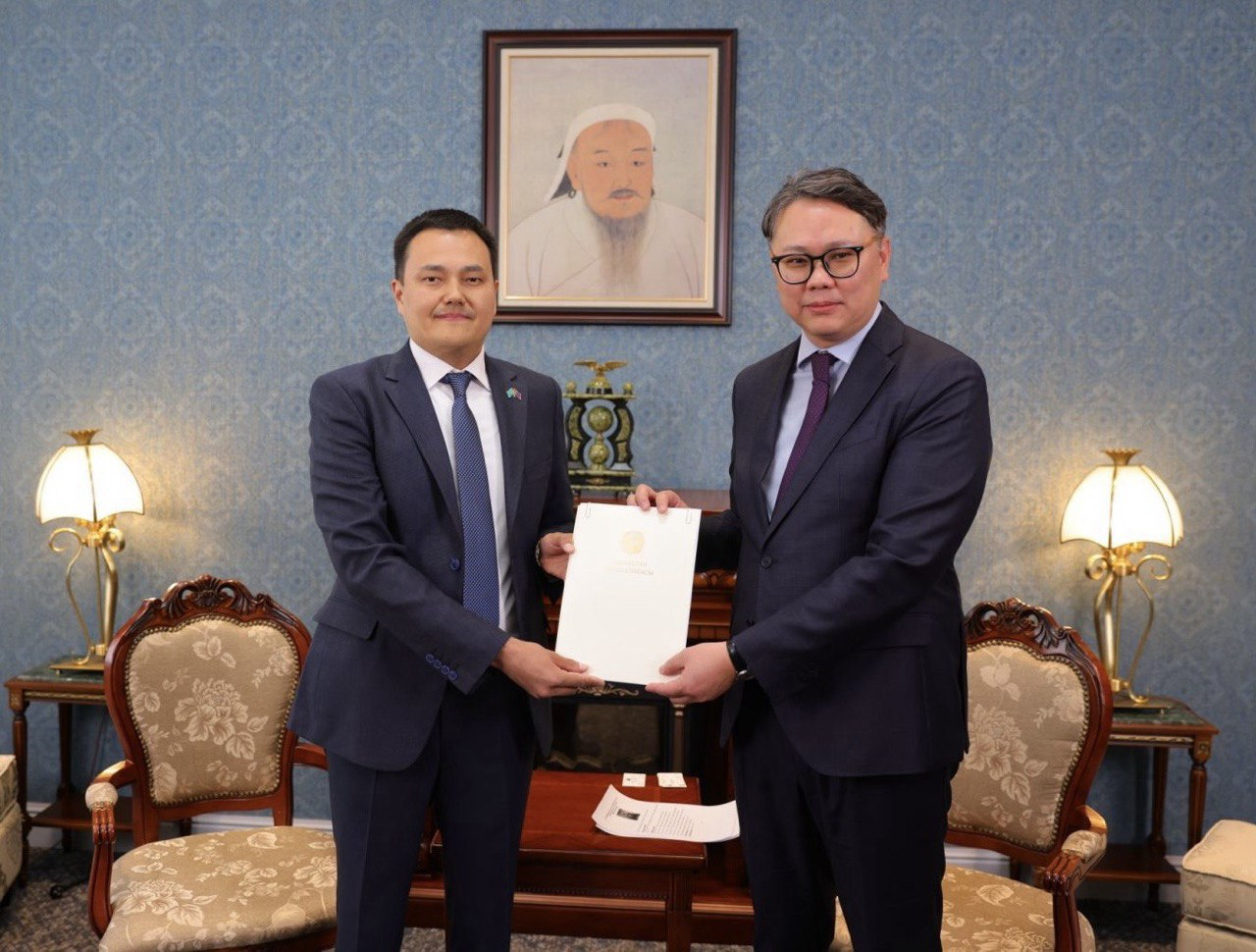 Ұлан-Батыр, 2025 ж. 4 маусым – Қазақстан Республикасының Моңғолиядағы Төтенше және Өкілетті Елшісі Алмас Сейтақынов Моңғолияның Сыртқы қатынастар министрлігінің Мемлекеттік хатшысы Л.Мөнхтүшигке сенім грамоталарының көшірмелерін табыстады.Кездесу барысында тараптар Қазақстан мен Моңғолия арасындағы сауда, көлік, логистика, ауыл шаруашылығы сияқты салалардағы стратегиялық әріптестікті дамыту, сондай-ақ 2025 ж. жоғары деңгейдегі өзара сапарларды іске асыру мен кезекті үкіметаралық комиссияның отырысын ұйымдастыру бойынша пікір алмасты.Ақпарат көзі : https://www.gov.kz/memleket/entities/mfa-ulaanbaatar/press/news/details/1012236?lang=kk