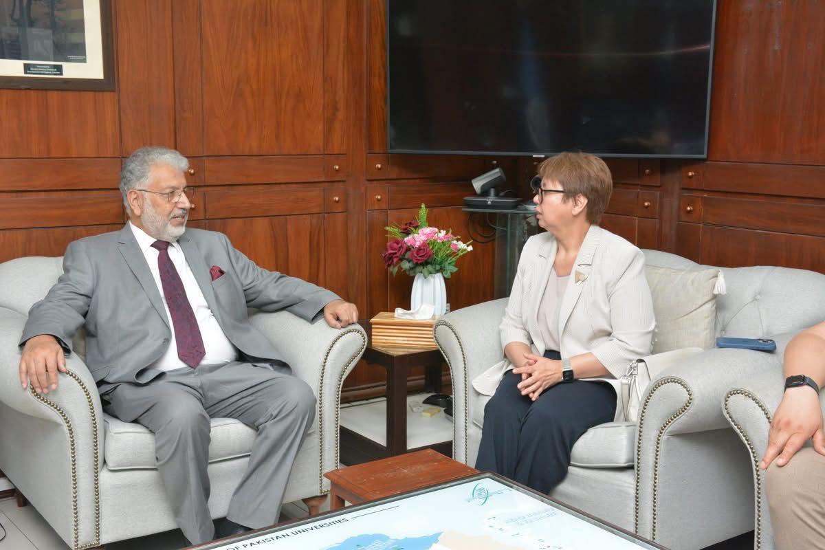 2025 жылғы 26-30 мамыр аралығында Исламабад және Лахор қалаларына ректор Анар Ақылбекқызы Тұрмұхамбетова бастаған ҚР жетекші жоғары оқу орындарының бірі «Астана медицина университетінің» делегациясы келді.Сапар барысында Пәкістанның жетекші медициналық университеттерінің – «Ұлттық медицина ғылымдары университетінің» (НУМС), «Равалпинди медициналық университетінің»(RMU), «Шиф Тамир-е-Миллат университетінің»(STMU), «Кинг Эдвард медициналық университетінің» (KEMU), Пенджаб университетінің, Лахордағы денсаулық ғылымдары университетінің (UHS), сондай-ақ ең ірі Исламабад клиникаларының бірі – «Маруф» халықаралық клиникаларының бірі – басшылығымен кездесулер өтті.Сонымен қатар, Пәкістанның жоғары білім жөніндегі комиссиясының төрағасы доктор Мұхтар Ахмедпен, Пенджаб провинциясының білім министрі Рана Сикандар Хаятпен, Пәкістанның Медициналық және стоматологиялық кеңесінің (PMDC) өкілдерімен, сондай-ақ ИЫҰ ғылыми және технологиялық ынтымақтастық жөніндегі тұрақты комитетінің (COMSTECH) бас үйлестірушісі профессор доктор Икбал Чаудримен келіссөздер жүргізілді.Өткен келіссөздер барысында тараптар медициналық зерттеулер, студенттермен, профессорлық-оқытушылық құраммен алмасу, оқу бағдарламаларын зерделеу және т. б. салалардағы өзара іс-қимыл мүмкіндігін зерделеу мақсатында медициналық оқу орындары арасындағы ынтымақтастықты жолға қою перспективаларын талқылады. Осыған байланысты тараптар медициналық жоғары оқу орындары мен денсаулық сақтау ұйымдары арасында тікелей байланыс орнату қажеттігін атап өтті.Қазақстанда пәкістандық студенттердің көп саны білім алатынын ескере отырып, академиялық ұтқырлықты дамыту, Пәкістанның медициналық оқу және емдеу мекемелерінде интернатура ұйымдастыру, онлайн немесе офлайн дәрістер өткізу және т. б. мәселелеріне ерекше назар аударылды.Сондай-ақ, тараптар ҚР және ПИР ЖОО-на түсу үшін екі елдің азаматтарын іріктеудің транспарентті және әділ жүйесін құру мақсатында ынтымақтастықты жолға қоюға өзара мүдделілік білдірді.Қазақстан елшілігі Пәкістанның Жоғарғы оқу орындарымен кездесулерді ұйымдастыруда көрсеткен сыпайы көмегі үшін ПИР жоғары білім беру Комиссиясының төрағасы доктор М.Ахмедке шын жүректен алғысын білдіреді. Ақпарат көзі : https://www.gov.kz/memleket/entities/mfa-islamabad/press/news/details/1008830?lang=kk