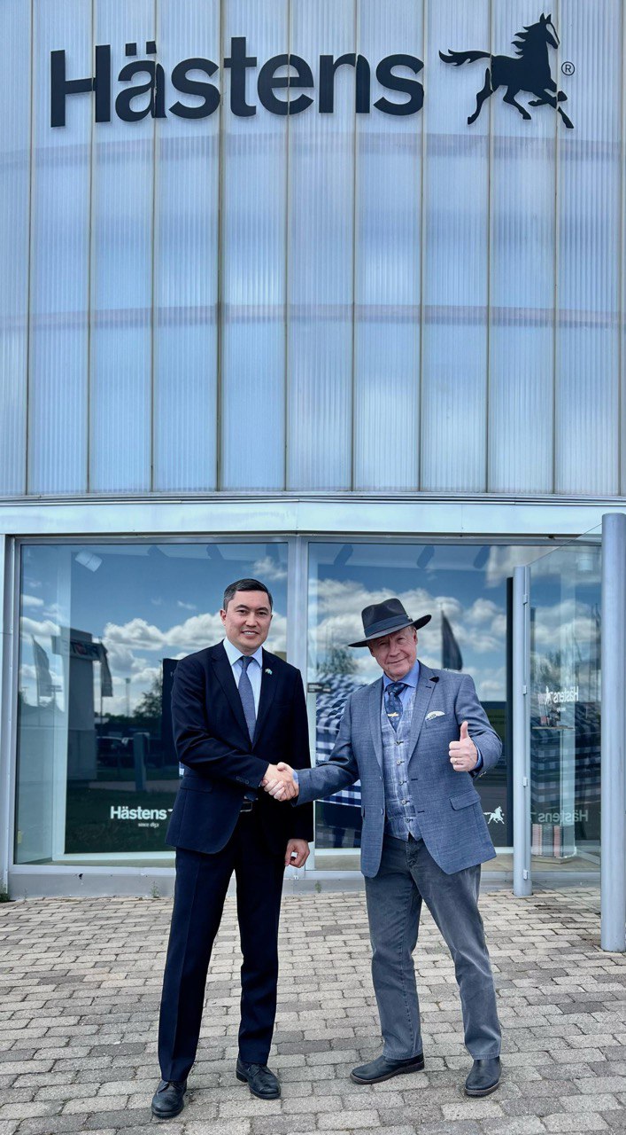 Чёпинг, 2025 жыл 28 мамыр – Қазақстан Республикасының Швециядағы Елшісі Олжас Сүлейменов премиум төсек өндірісіне маманданған әлемге әйгілі швед бренді Hästens компаниясының штаб-пәтерімен өндірістік қуаттарына іс-сапар жасады.Компания басшылығымен әңгімелесу барысында өнімнің жекелеген компоненттерін, атап айтқанда Қазақстаннан табиғи жылқы шашын жеткізу әлеуетін, Астана мен Алматыда флагмандық бутиктердің ашылуын, сондай-ақ Қазақстанның Орталық Азиядағы Hästens үшін өңірлік хаб ретінде орналасу мүмкіндіктерін қоса алғанда, ынтымақтастық перспективалары талқыланды.ҚР Елшісі Қазақстан жылқы шаруашылығының бай дәстүріне ие бола отырып, Hästens үшін, әсіресе компанияның жылқы шашы, мақта, зығыр және жүнді қоса алғанда, табиғи материалдарды пайдаланатын өндіріске бірегей көзқарасын ескере отырып, қызықты нарық ұсынатынын атап өтті.Кездесудің соңына қарай, ҚР Елшісі Hästens басшылығын нарықты егжей-тегжейлі зерделеу, тиісті мемлекеттік органдар және әлеуетті серіктестермен кездесу ұйымдастыру мақсатында Қазақстанға іс-сапармен баруға шақырды.Анықтама: Hästens (швед тілінен аударғанда – «жылқы») – төсектер, матрастар және премиум ұйқы аксессуарларының әлемге әйгілі швед өндірушісі. 1852 жылы Чепинг қаласы, Швецияда құрылған отбасылық бизнес. Бүгінгі таңда Hästens өнімдері Еуропадағы, Солтүстік Америкадағы, Азиядағы және Таяу Шығыстағы флагмандық бутиктерді қоса алғанда, 45-тен астам елде ұсынылған. Швед Корольдік отбасысы, көптеген басқа монархтар мен мемлекет басшылары бірнеше жылдар бойы Hästens компаниясының клиенттері қатарына кірген.Ақпарат көзі : https://www.gov.kz/memleket/entities/mfa-stockholm/press/news/details/1006688?lang=kk