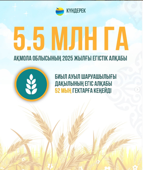 Биыл Ақмола облысындағы егістік алқаптарының жалпы ауданы 5.5 млн гектарды құрап, өткен жылғыдан 52 мың гектарға артты. 29.05.2025