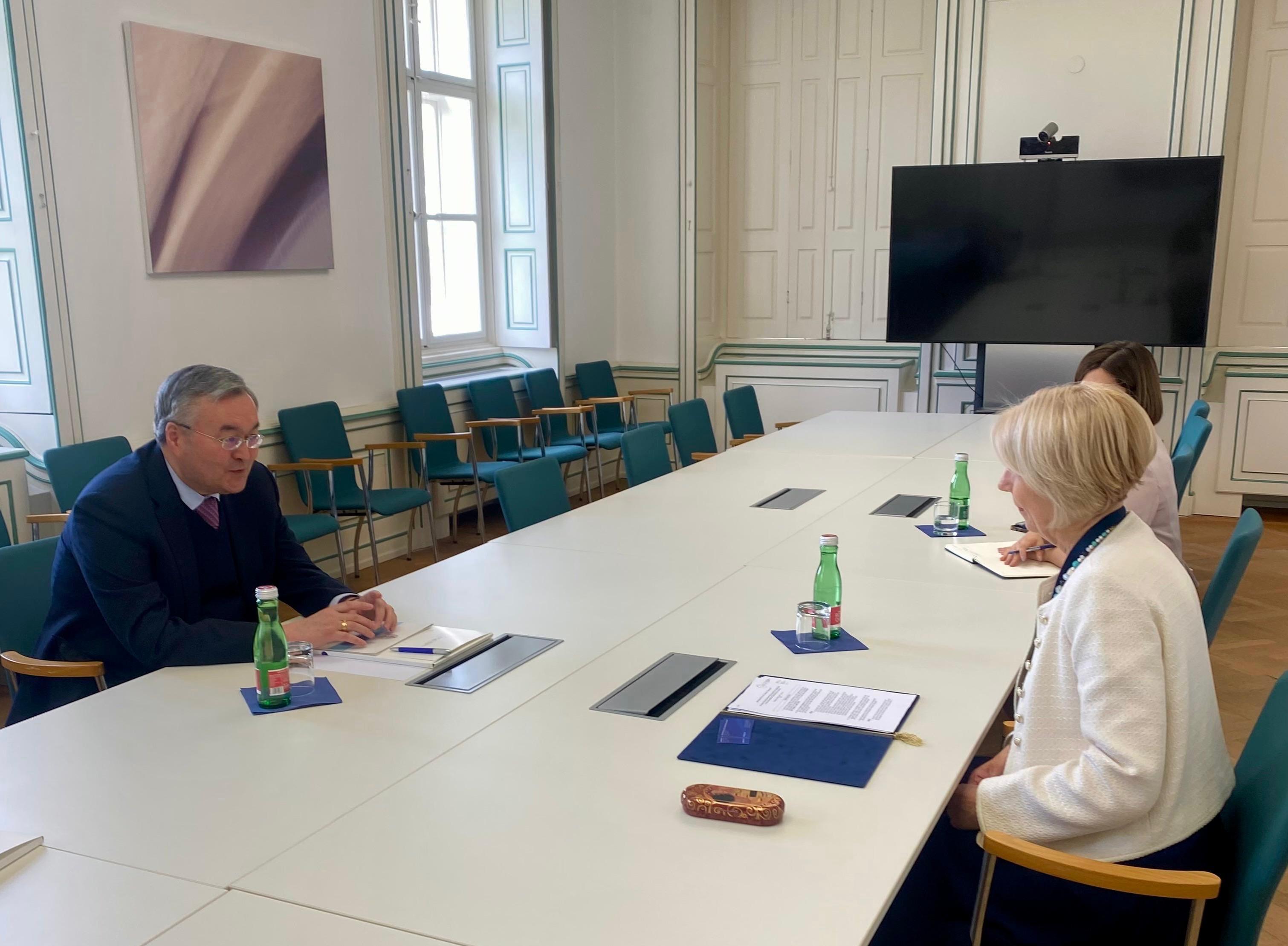 Вена, 2025 жылғы 20 мамыр – Қазақстан Республикасының Венадағы халықаралық ұйымдар жанындағы Тұрақты өкілі Мұхтар Тілеуберді Халықаралық сыбайлас жемқорлыққа қарсы академияның (International Anti-Corruption Academy - IACA) ректоры Слагяна Тасевамен кездесті.Елші Академияның сыбайлас жемқорлыққа қарсы күрес саласында мамандар даярлаудағы және ашықтық пен есептілікке негізделген халықаралық стандарттарды ілгерілетудегі маңызды рөлін атап өтті.Тараптар қазіргі ынтымақтастықты және оны одан әрі кеңейту мүмкіндіктерін, соның ішінде қазақстандық мамандардың IACA білім беру бағдарламаларына қатысу мүмкіндіктерін талқылап, тәжірибе алмасу және жаһандық сыбайлас жемқорлыққа қарсы күн тәртібі аясында бірлескен бастамаларды іске асыру мәселелеріне ерекше назар аударды.Кездесу барысында тараптар серіктестікті нығайтуға және практикалық өзара іс-қимылды дамытуға өзара мүдделілік білдірді.Ақпарат көзі : https://www.gov.kz/memleket/entities/mfa-vienna/press/news/details/1000280?lang=kk